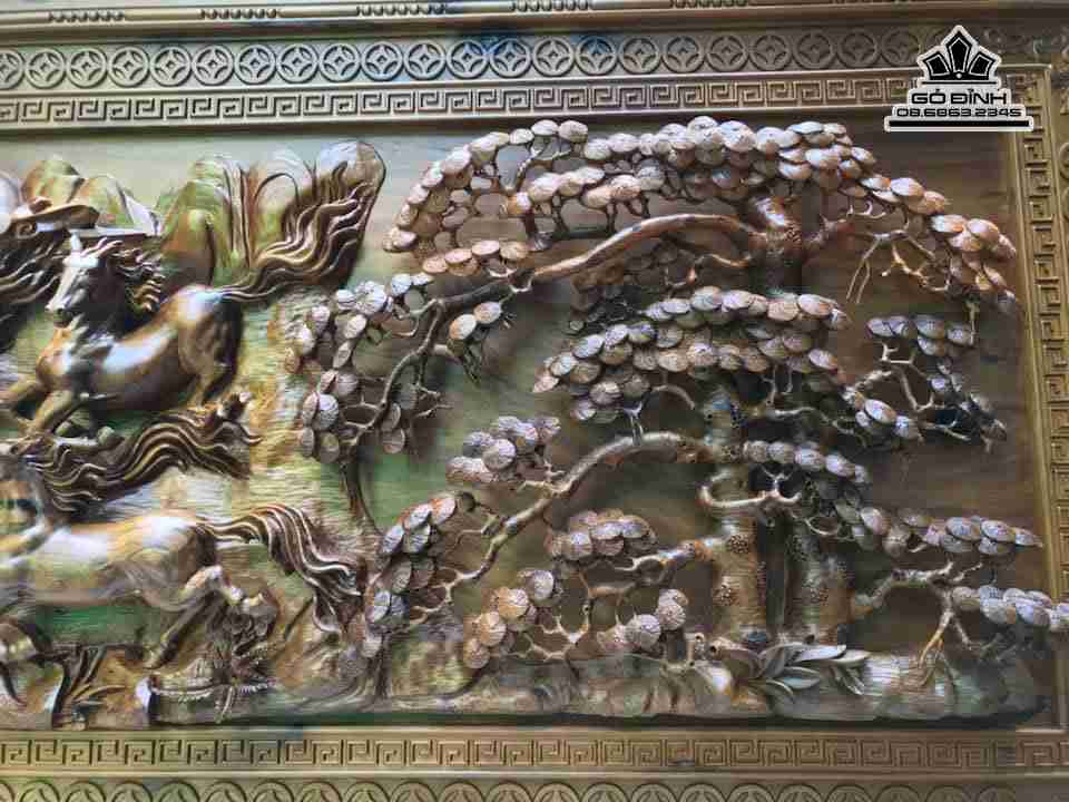 Tranh Mã Đáo Thành Công gỗ bách xanh cao 77 rộng 1m67 dày 10 (cm)