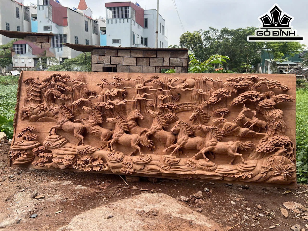 Tranh Mã Đáo Thành Công Gỗ Hương Đá Kích Thước 107x217x8 (cm)