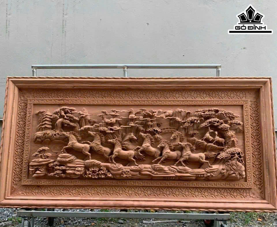 Tranh Mã Đáo Thành Công Gỗ Hương Đá Kích Thước 107x217x8 (cm)