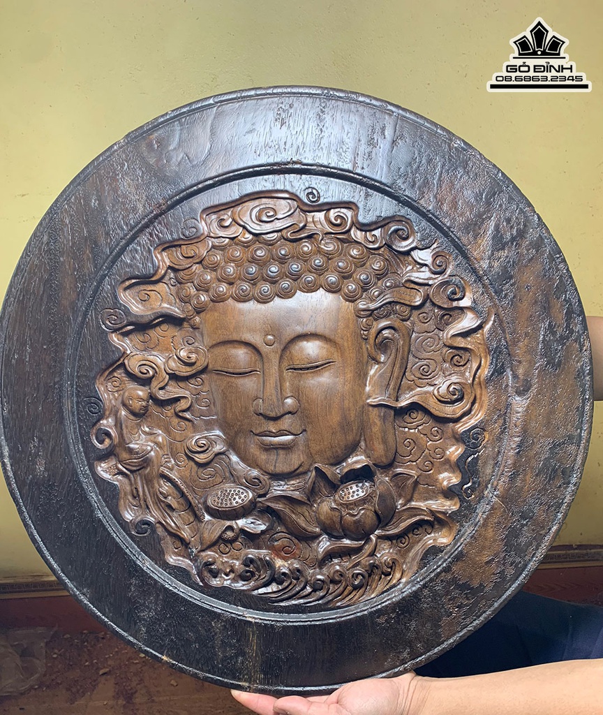 Tranh Nhị Phật Gỗ Dổi Việt Đường Kính 51 Dày 3.5 (cm)