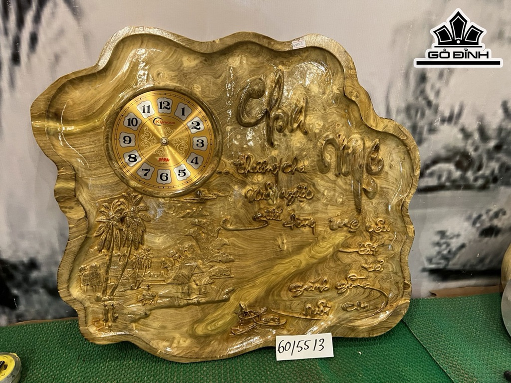Tranh Đồng Hồ Gỗ Nu Nghiến Cao 60 Ngang 55 Sâu 3 (cm)