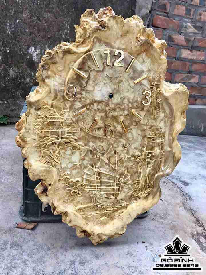 Tranh đồng hồ thuận buồm xuôi gió gỗ nu nghiến 55x39x2.2