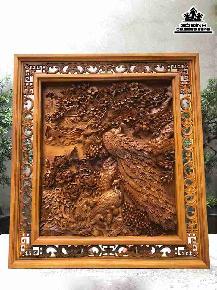 Tranh Phu Thê Viên Mãn Gỗ Bách Xanh Cao 80 Ngang 72 Dày 6 (cm)