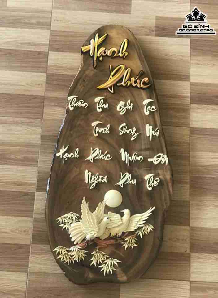 Tranh Phu Thê Viên Mãn gỗ xá xị (gù hương) rộng 49 cao 90 dày 2 (cm)