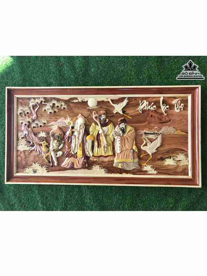 Tranh Phúc Lộc Thọ Gỗ Gõ Đỏ ( Cate ) Cao 60 Dài 128 (cm)