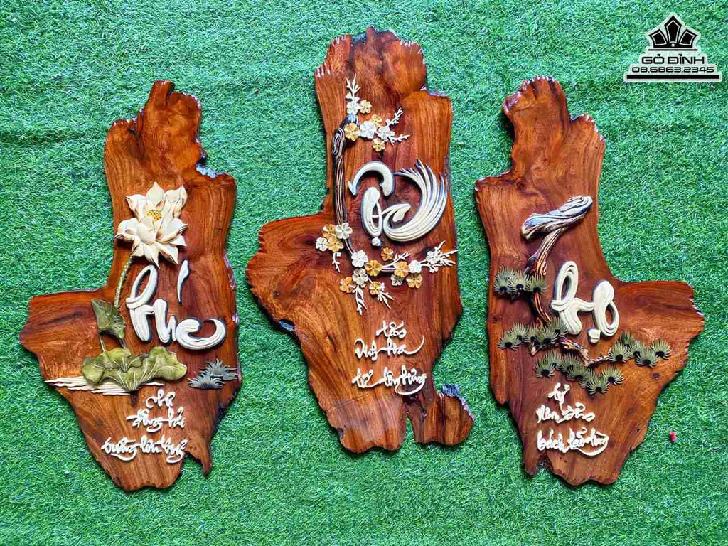 Tranh Phúc Lộc Thọ Gỗ Hương