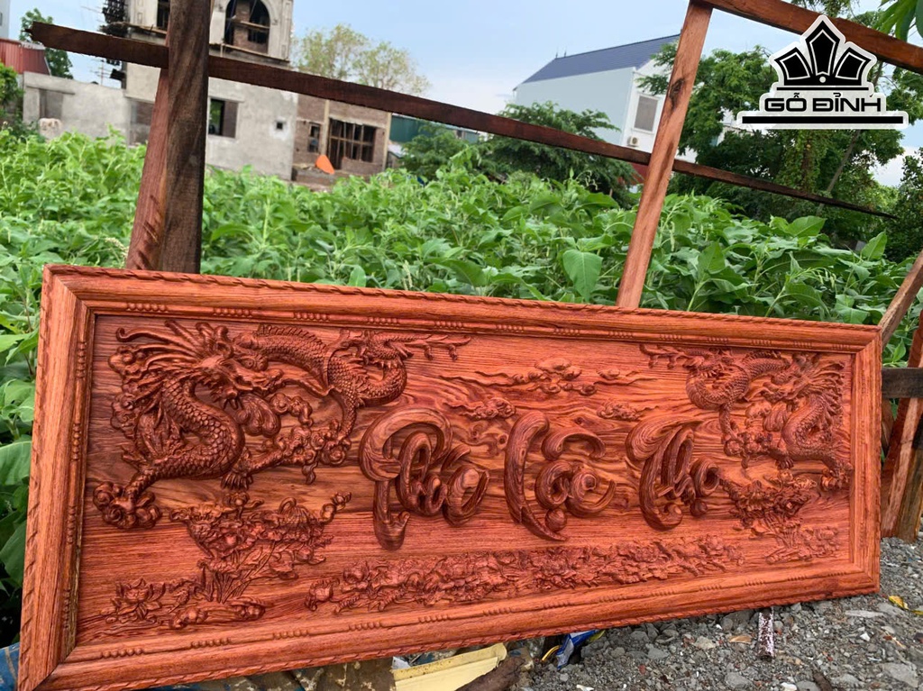 Tranh Phúc Lộc Thọ Gỗ Hương Đá Kích Thước 46x127x4 (cm)