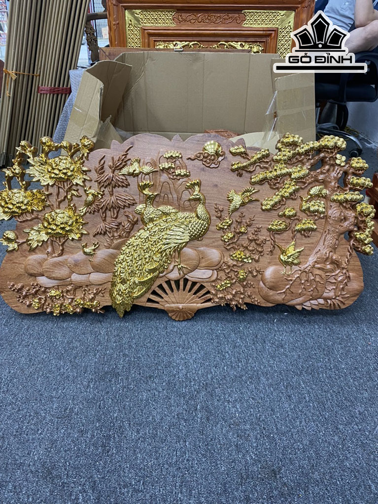 Tranh Quạt Chim Công Gỗ Hương Cao 50 Ngang 100 Sâu 3,7 (cm)
