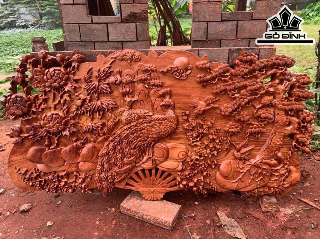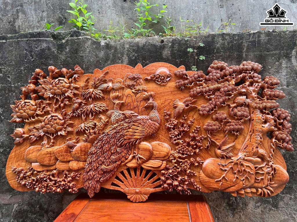 Tranh Quạt Phu Thê Viên Mãn Gỗ Hương Đá Kích Thước 50x100x3,5 (cm)