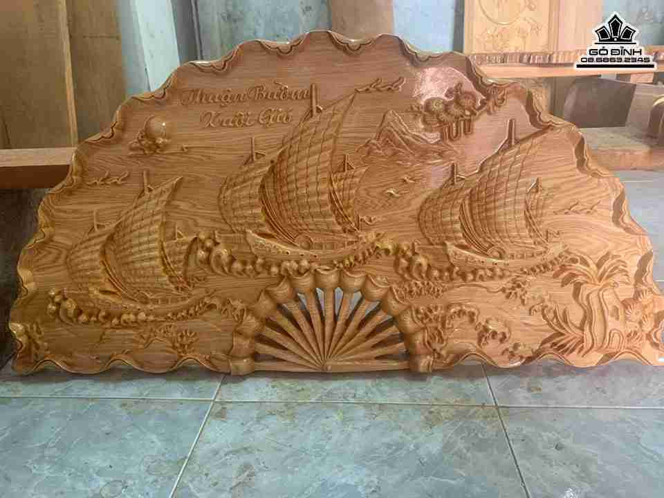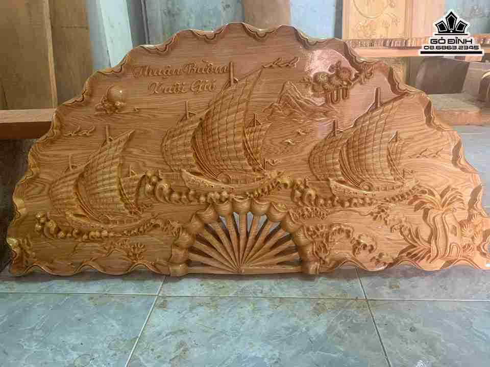 Tranh Quạt Thuận Buồm Xuôi Gió Gỗ Pơ Mu Cao 50 Ngang 100 Dày 4 (cm)