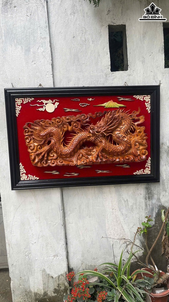 Tranh Rồng ( Nhất Long Trầu Nguyệt ) Gỗ Hương Cao 56 Ngang 85 Sâu 10 (cm)