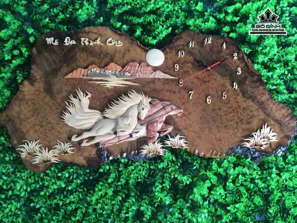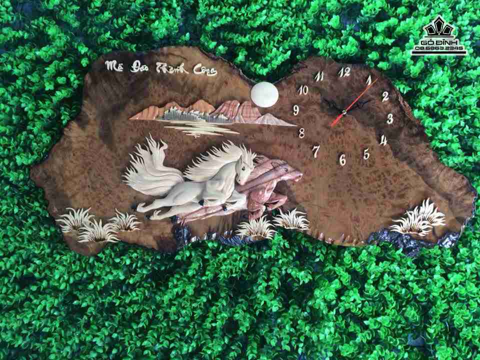 Tranh song mã uyên ương gỗ nu kháo rộng 75 cao 40 dày 2 (cm)