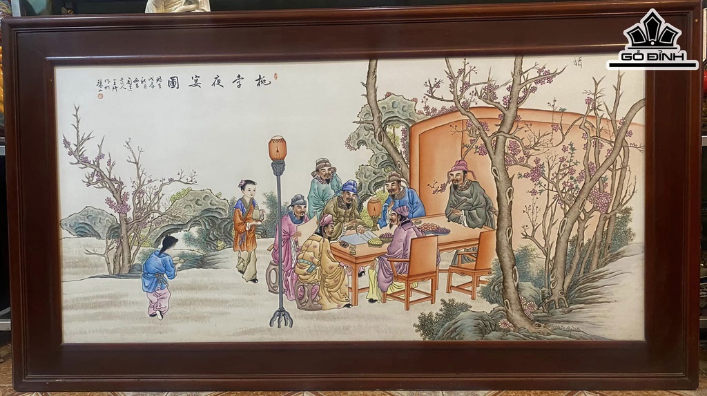 Tranh Sứ Vẽ Tích Thất Lão Bình Đồ Gốm Tàu Cao 110 Ngang 200 (cm)