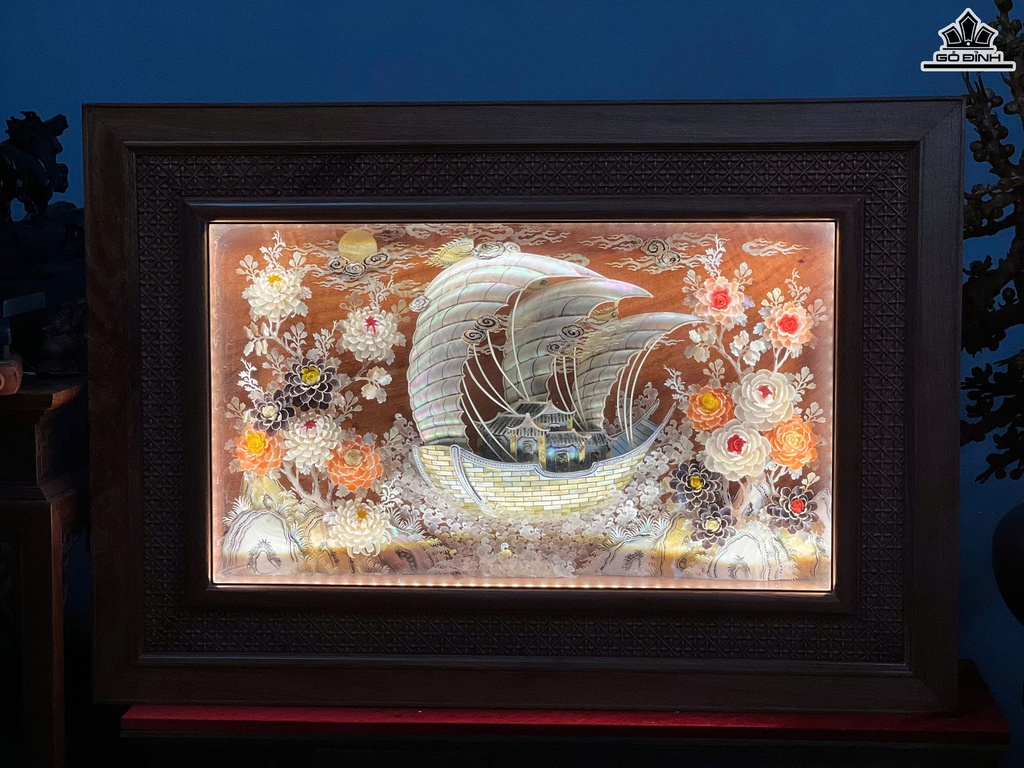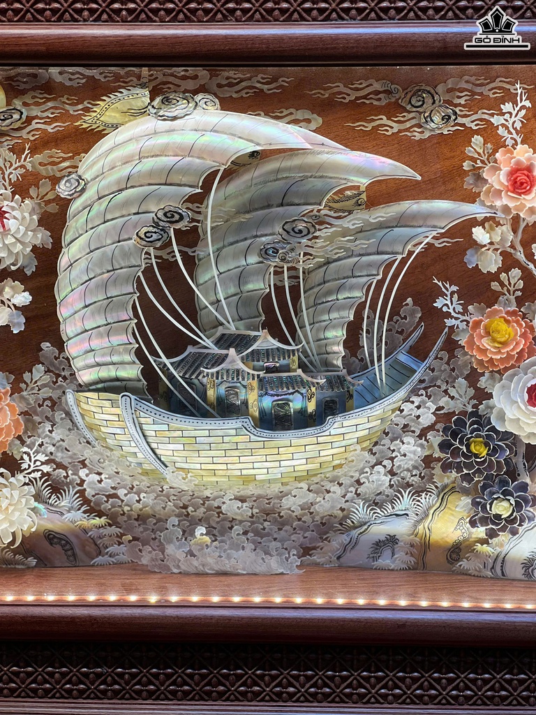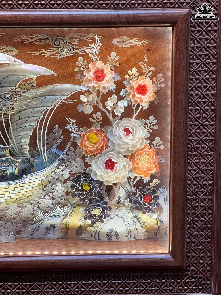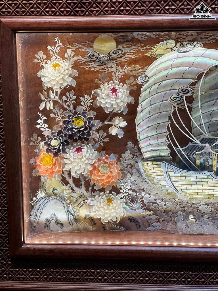 Tranh Thuận Buồm Xuôi Gió - Khung Hương Đá Hoa Lá Bào Ngư Ốc