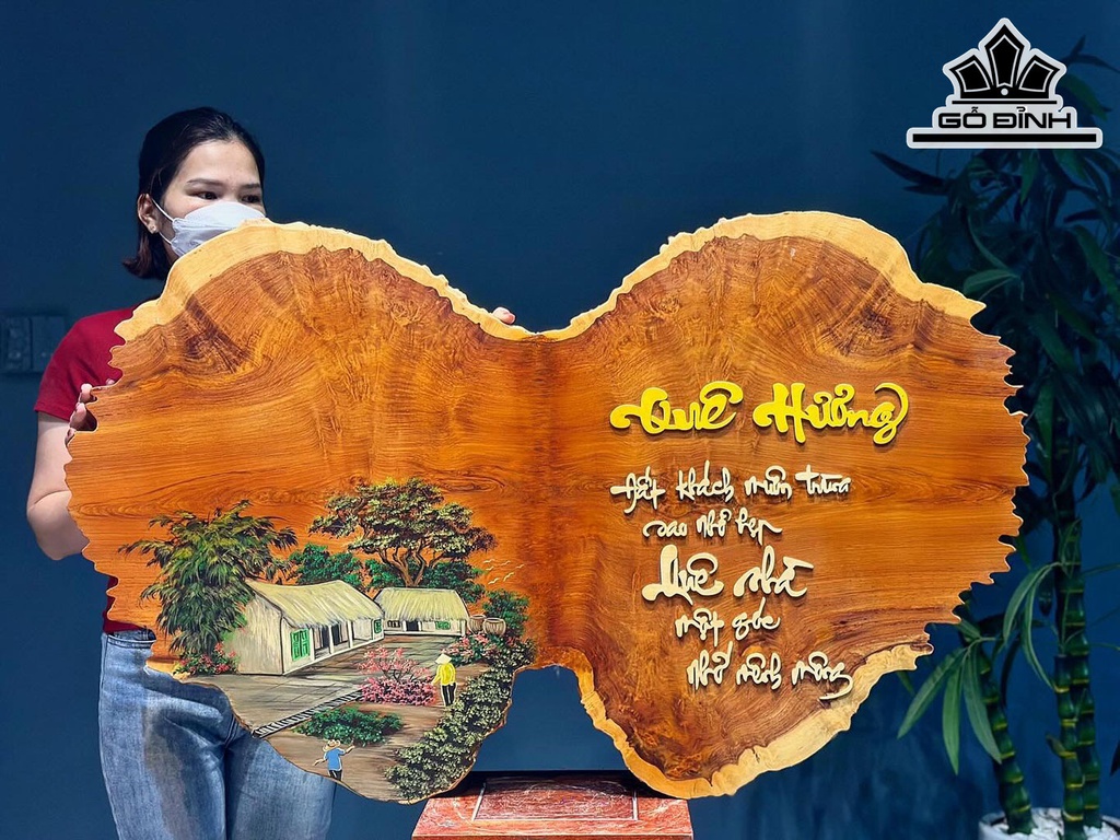 Tranh Treo Quê Hương Gỗ Nu Hương Cao 69 Ngang 112 Sâu 1 (cm)