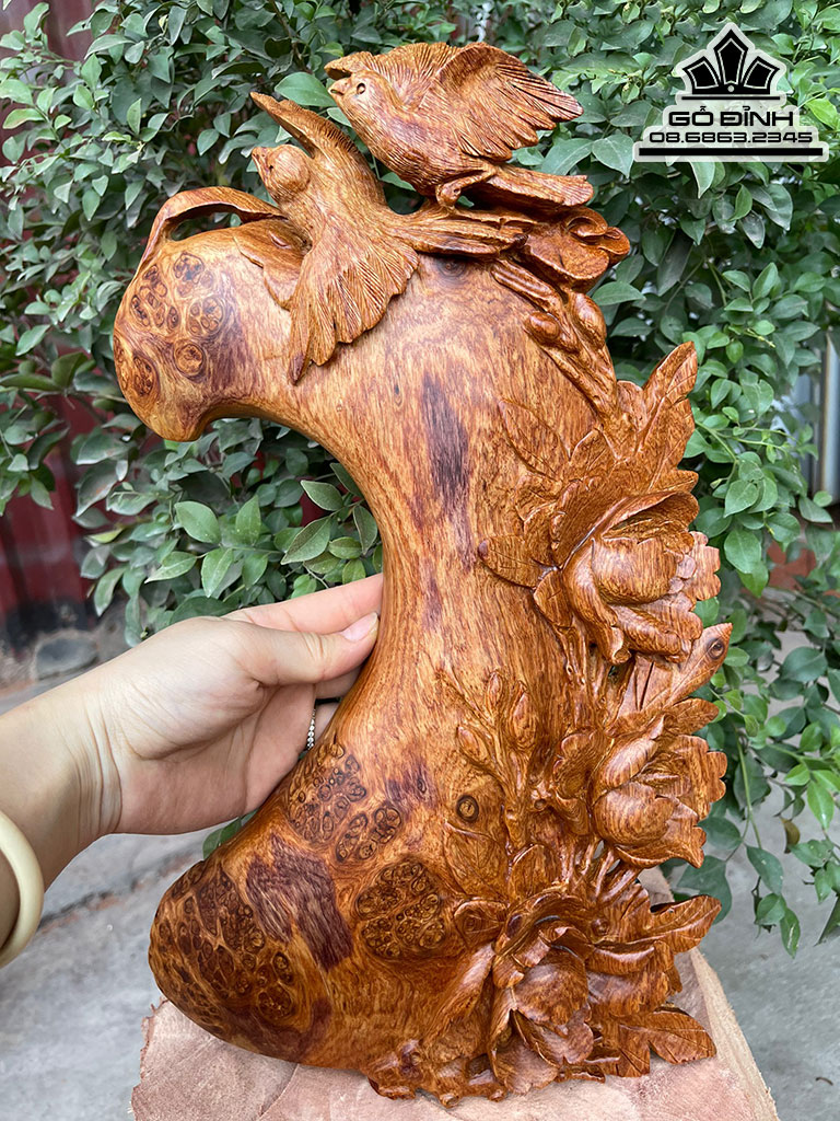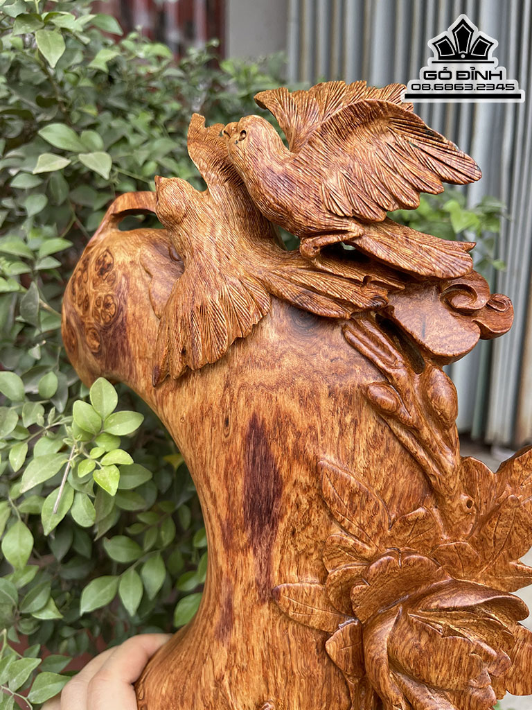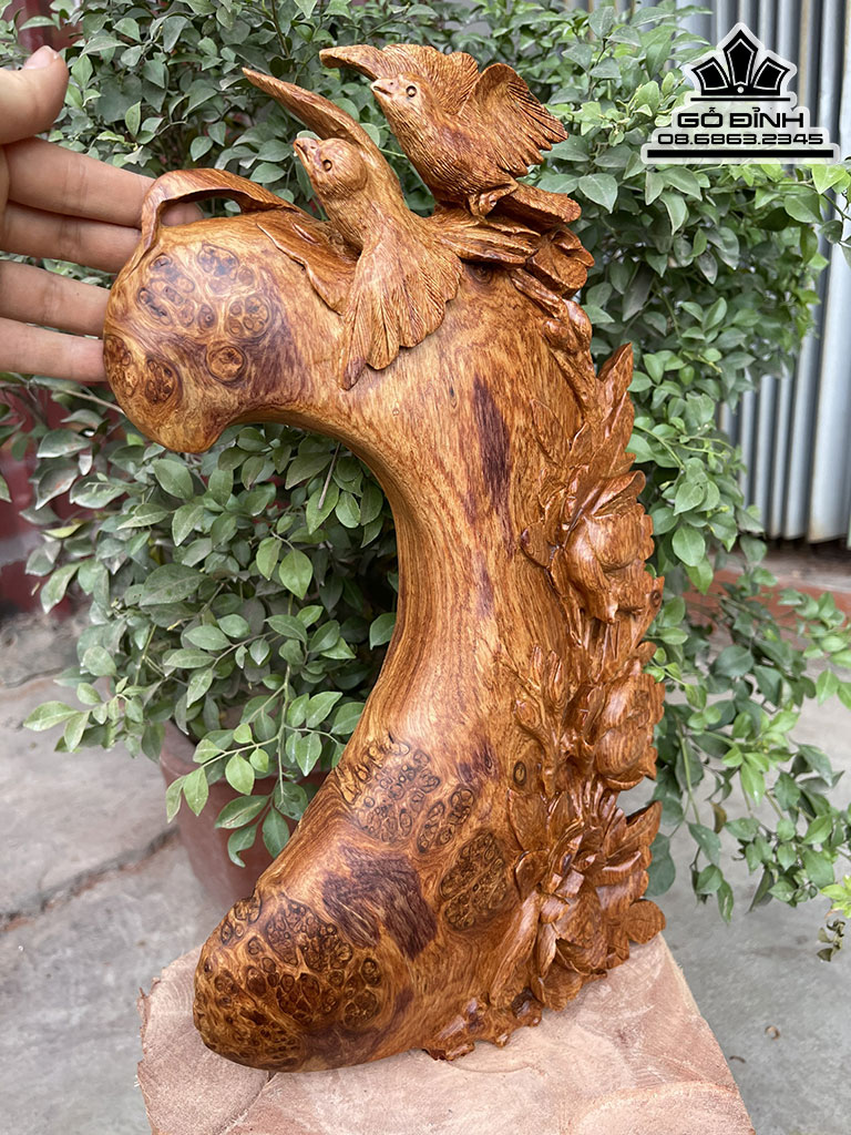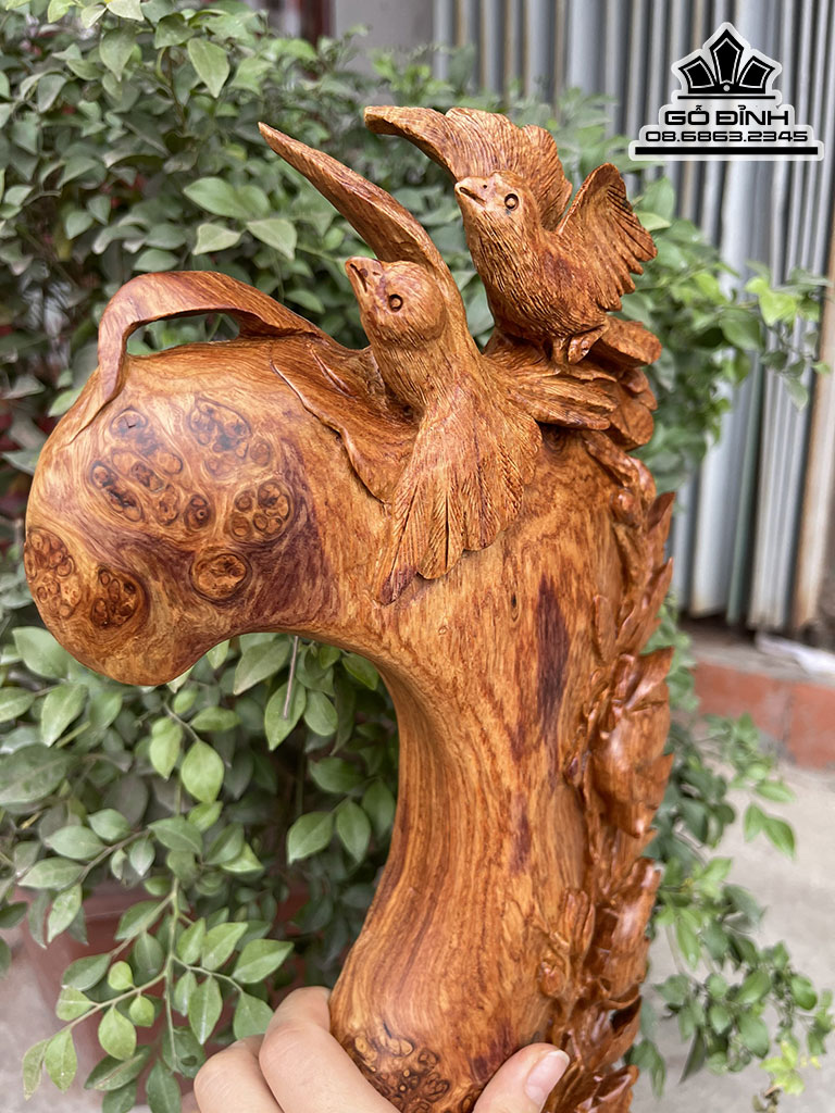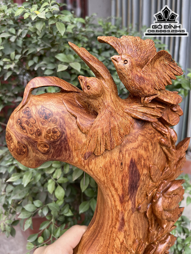 Tranh Treo Tường Đôi Chim Sẻ Gỗ Nu Hương Nguyên Khối Cao 35 Ngang 22 Sâu 4 (cm)
