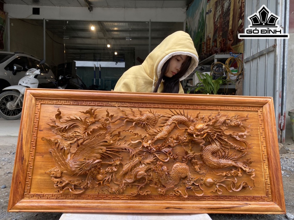 Tranh Treo Tường Tứ Linh Gỗ Hương Ngang 112 Rộng 50 Dầy 10 Nền Móc Sâu 3 (cm)