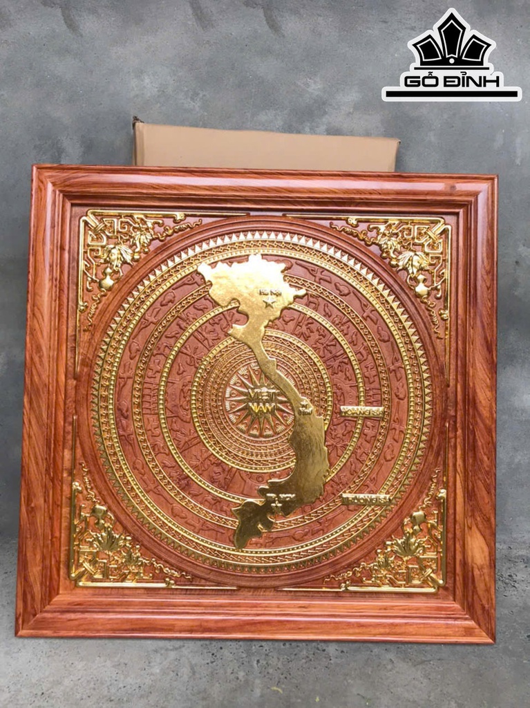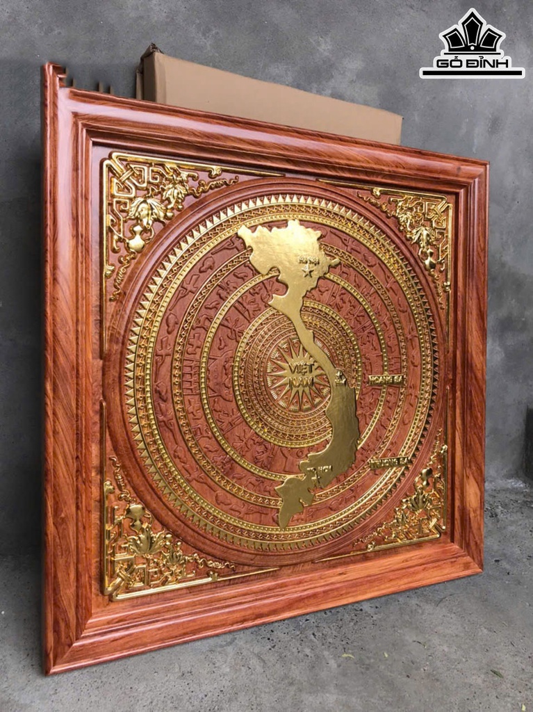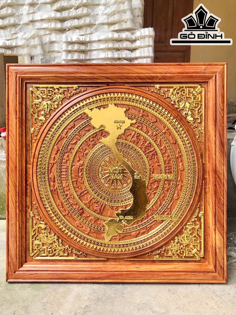 Tranh Trống Đồng Gỗ Hương Đá Kích Thước 81x81x5 (cm)