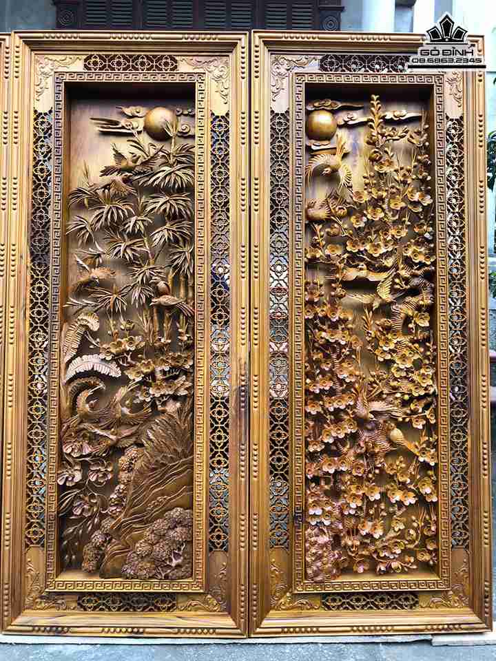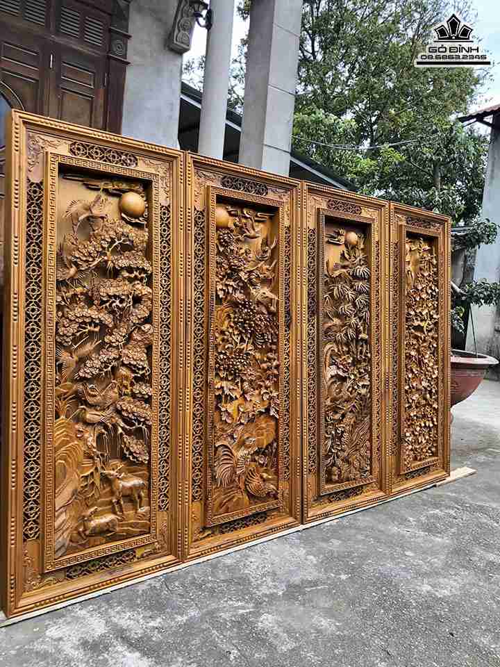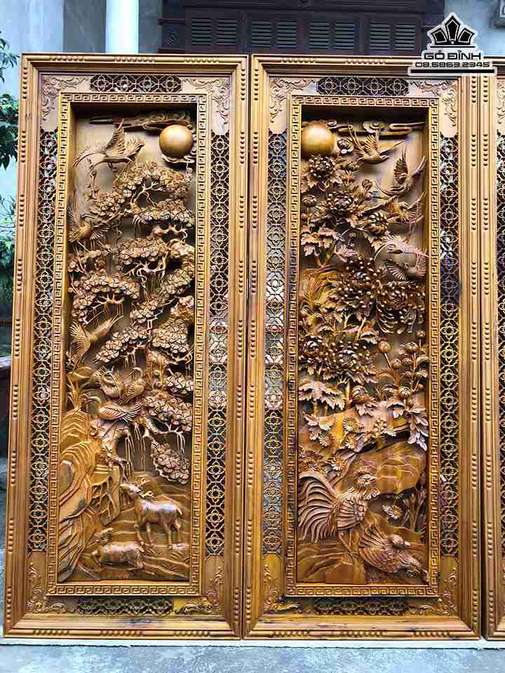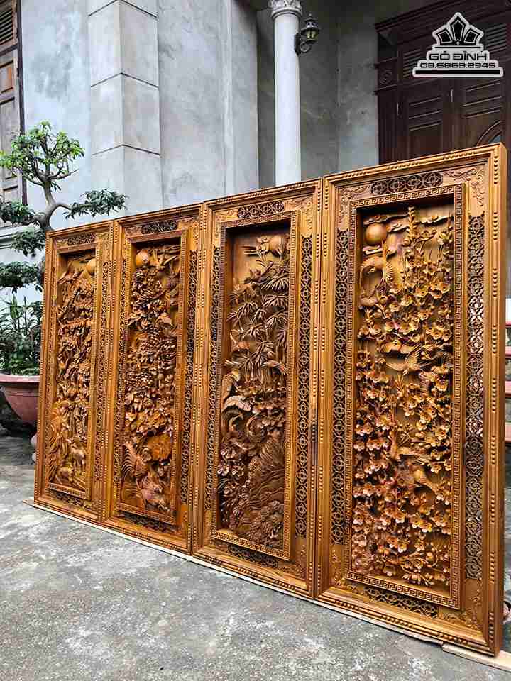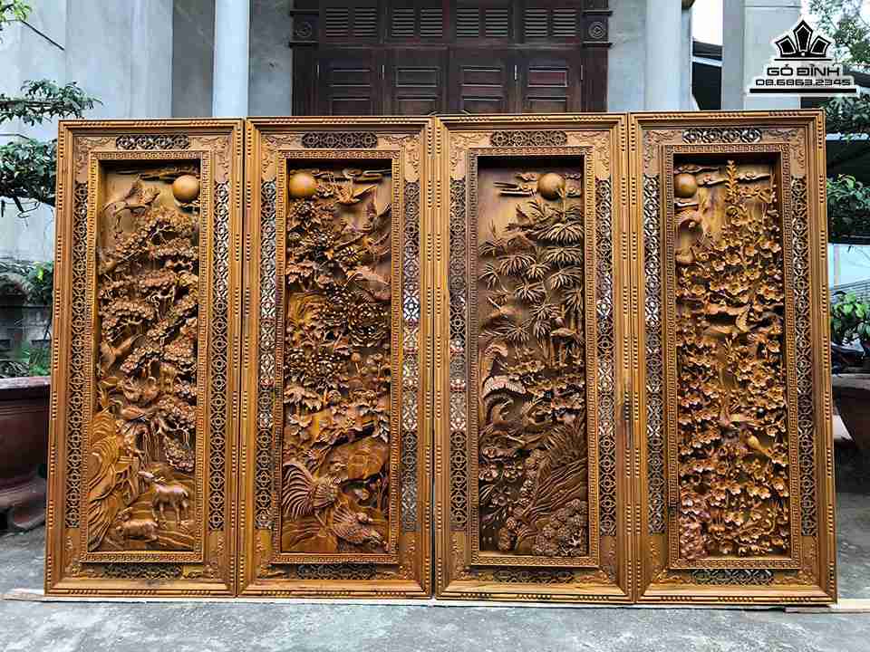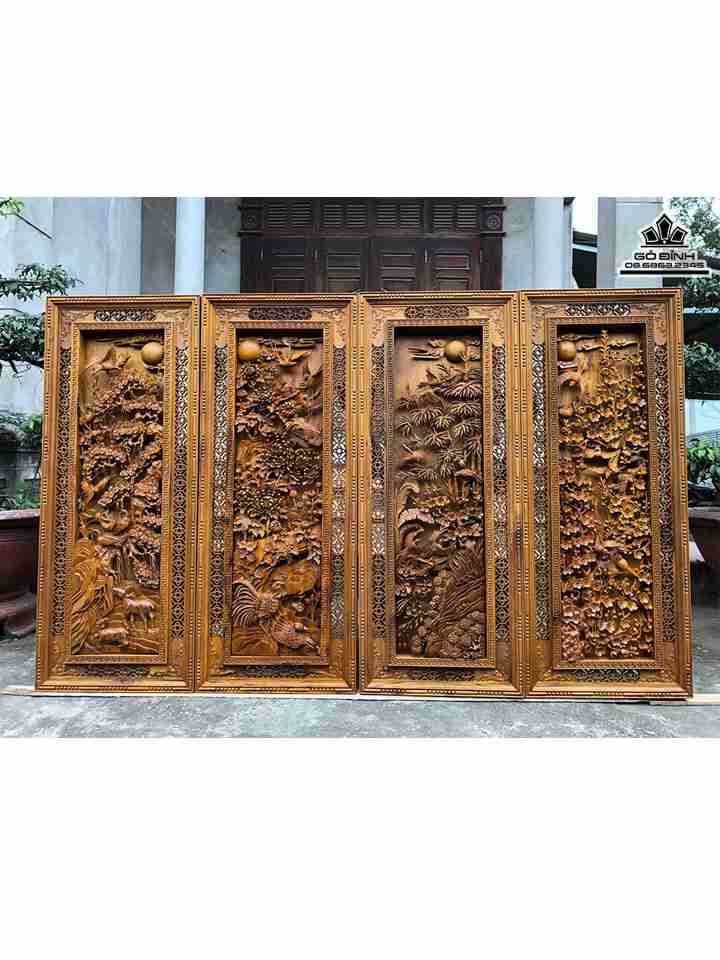 Tranh Tứ Quý Gỗ Bách Xanh Cao 126 Ngang 50 Dày 8 (cm)