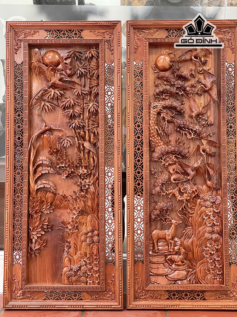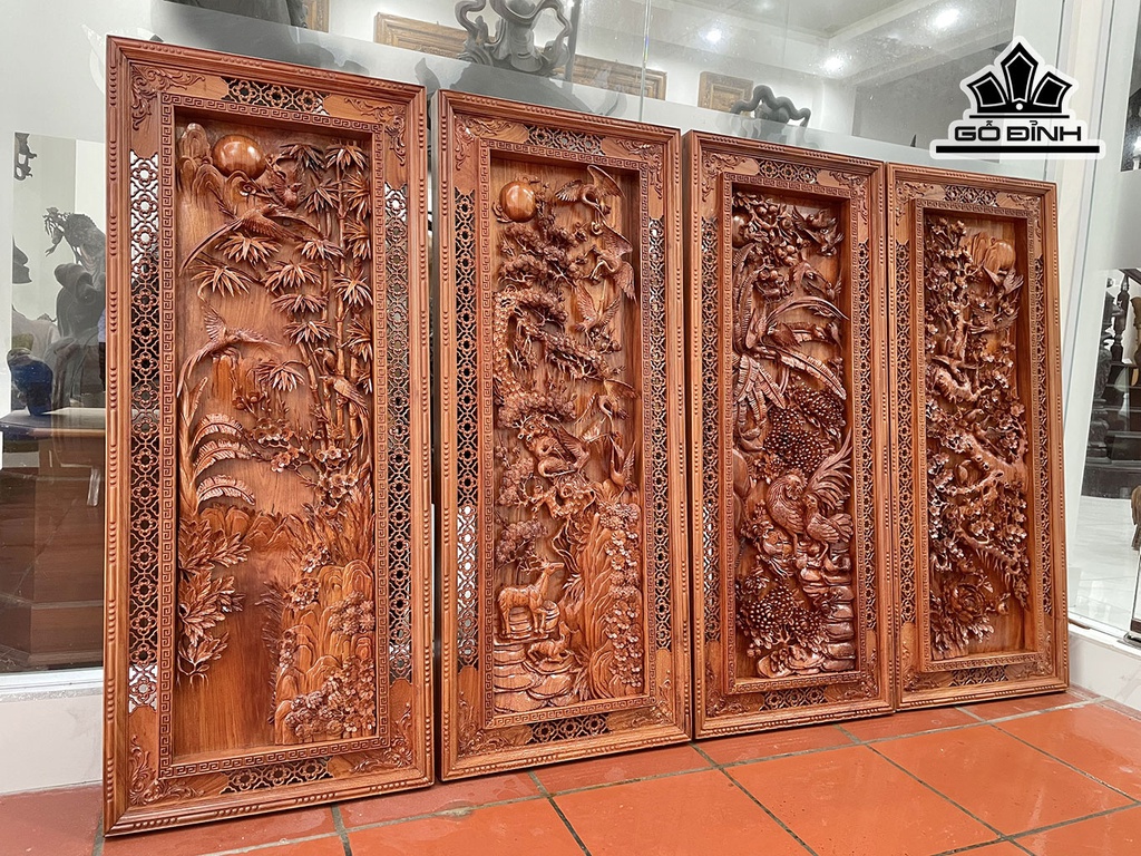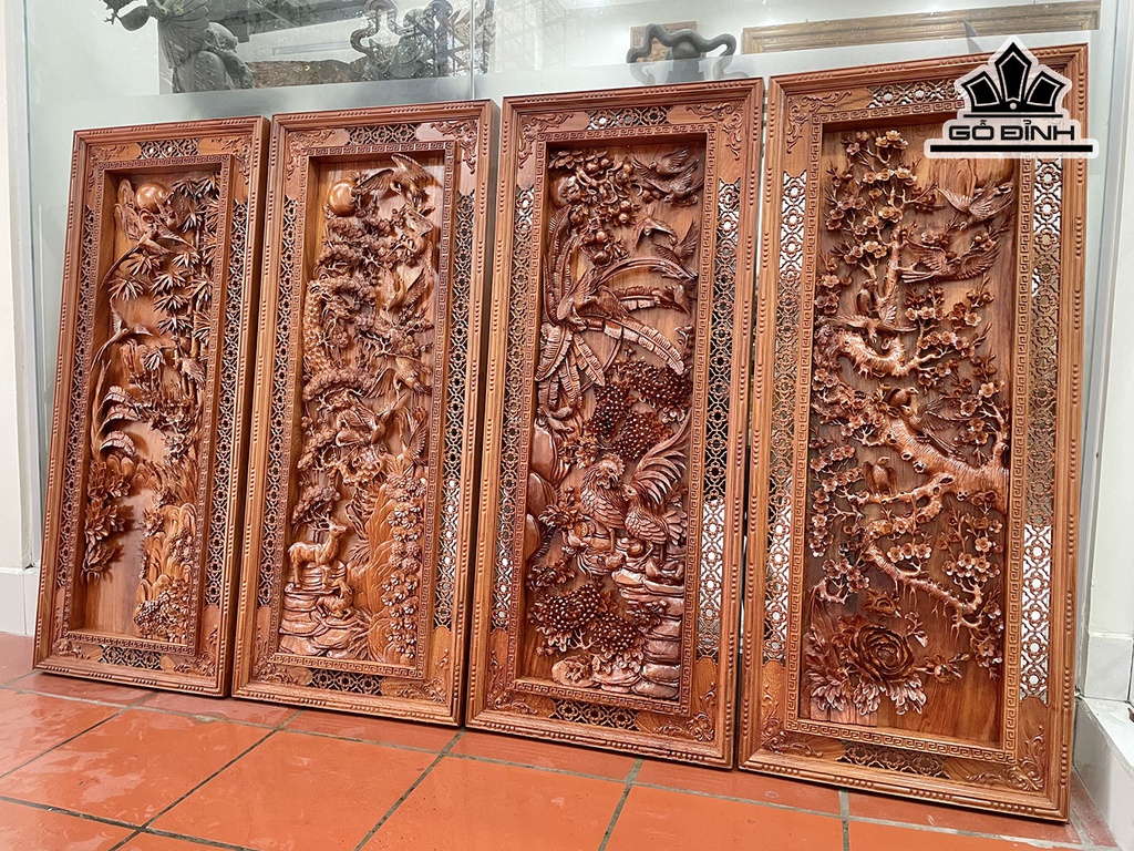Tranh Tứ Quý Gỗ Hương Đá Cao 146 Ngang 60 Sâu 7 (cm)