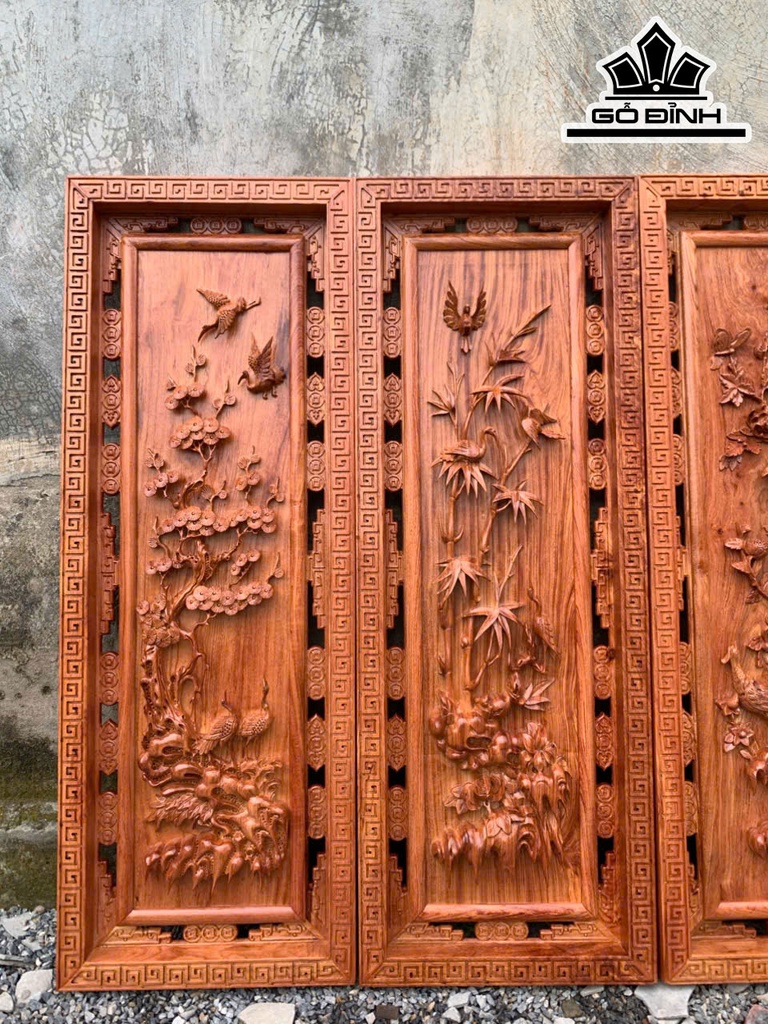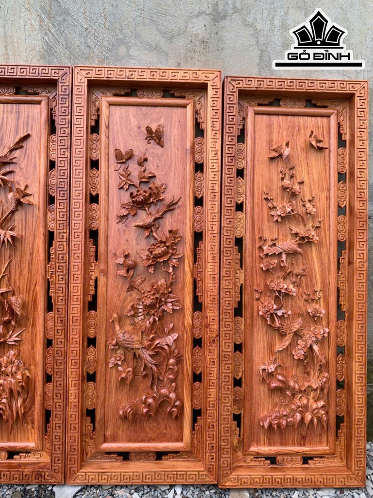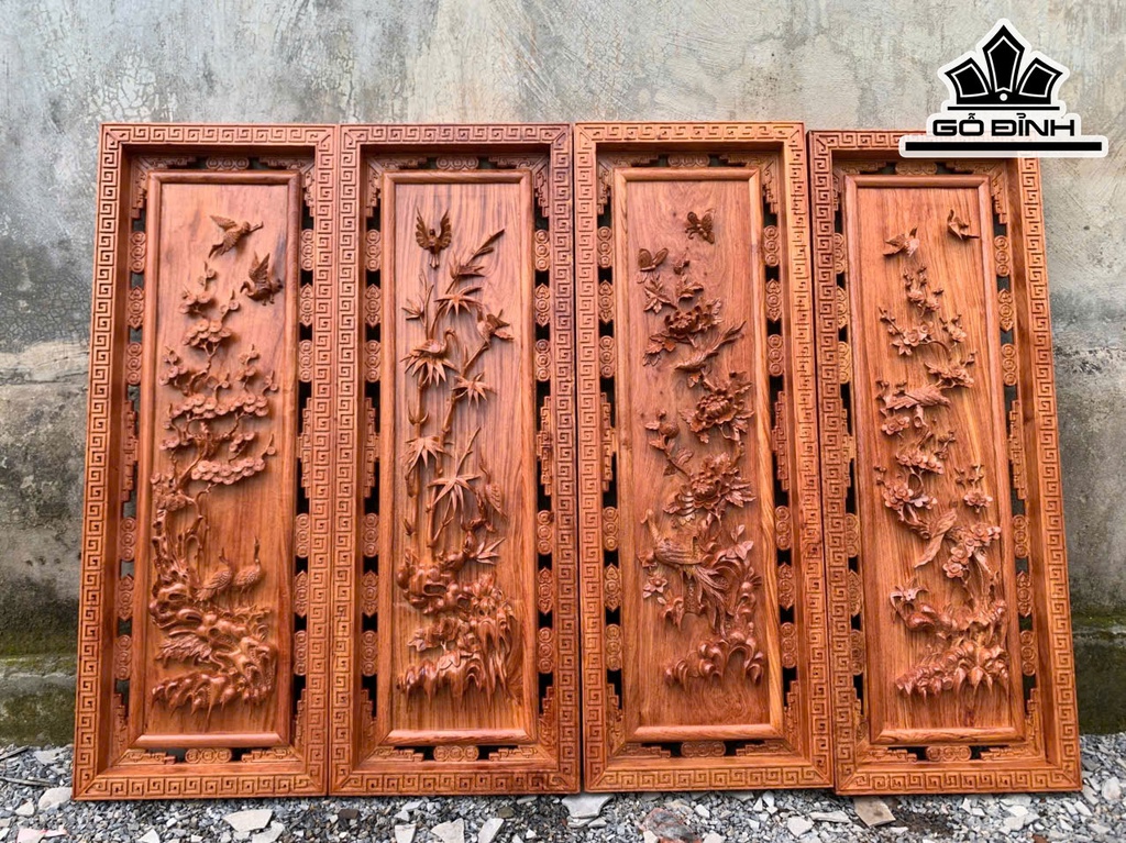 Tranh Tứ Quý Gỗ Hương Đá Kích Thước 42x117x5 (cm)
