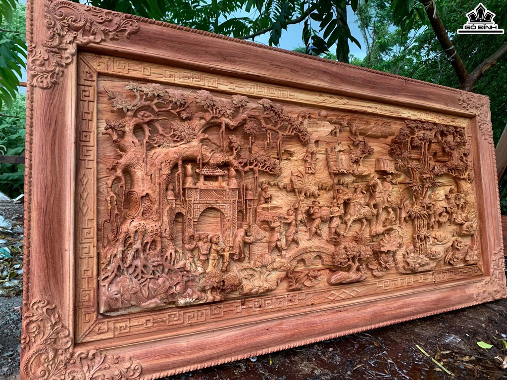 Tranh Vinh Quy Bái Tổ Gỗ Hương Đá Kích Thước 107x217x8 (cm)