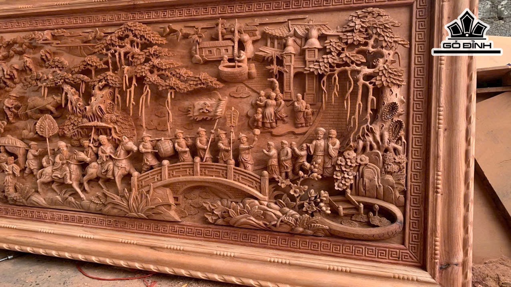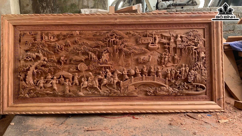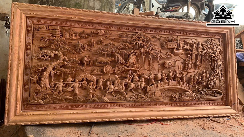 Tranh Vinh Quy Bái Tổ Gỗ Hương Đá Kích Thước 107x237x8 (cm)