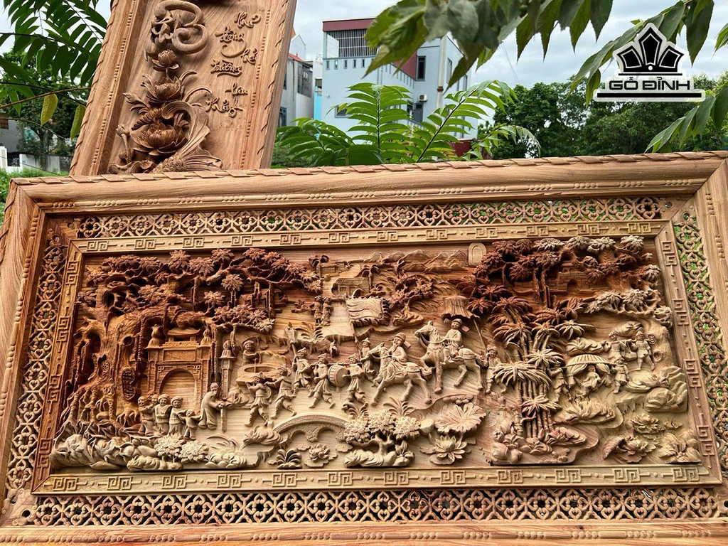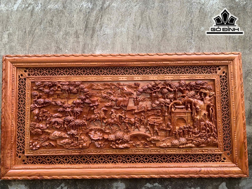 Tranh Vinh Quy Bái Tổ Gỗ Hương Đá Kích Thước 155x79x5 (cm)