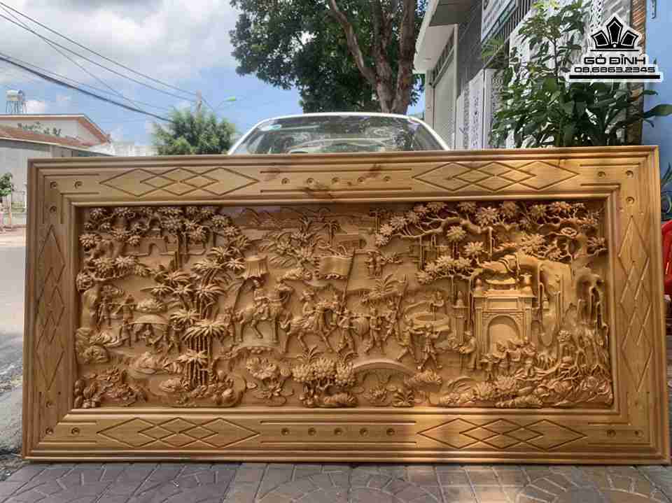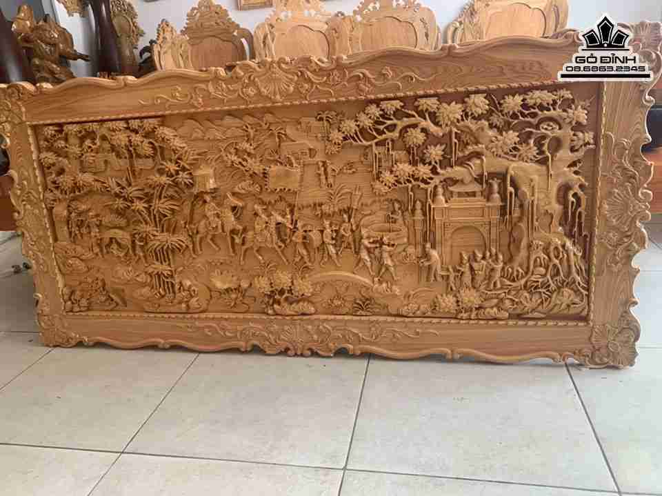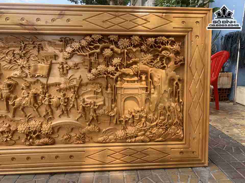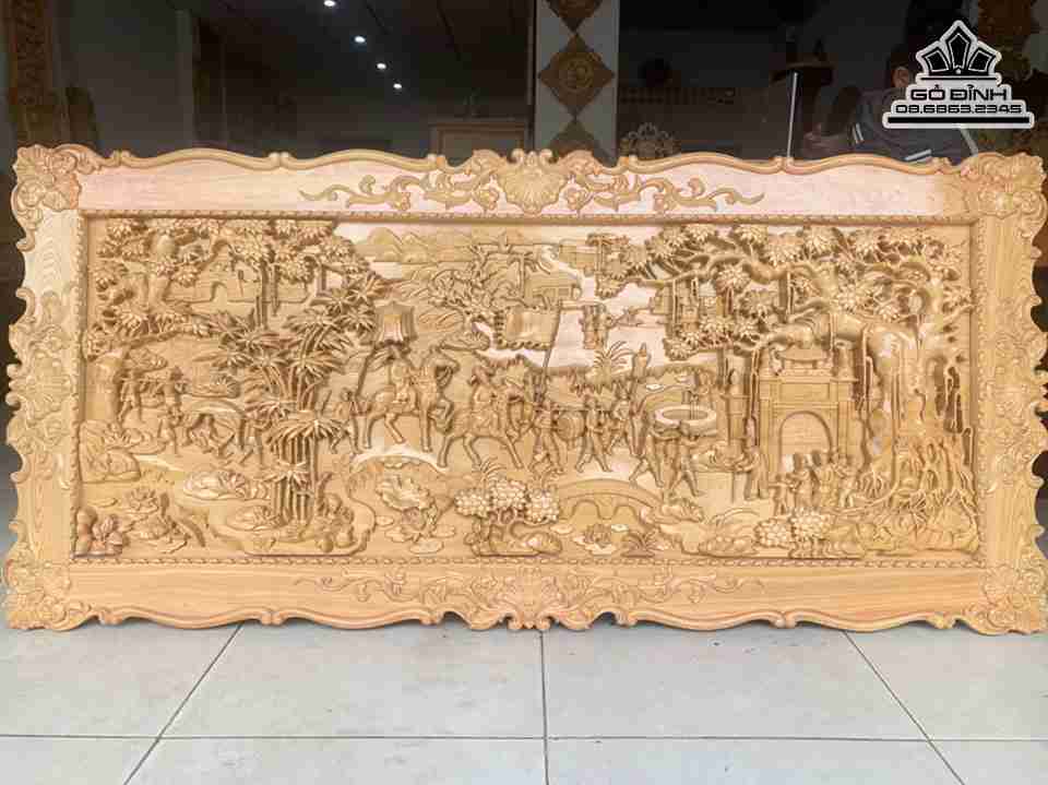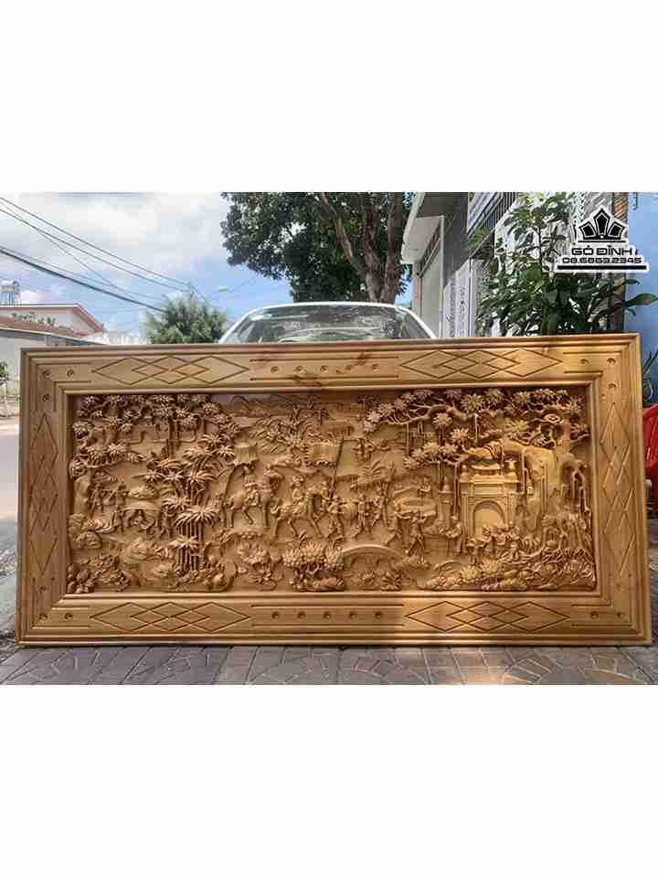 Tranh Vinh Quy Bái Tổ Gỗ Pơ Mu Cao 80 Ngang 170 Ván 4-5 Khung 3 (cm)
