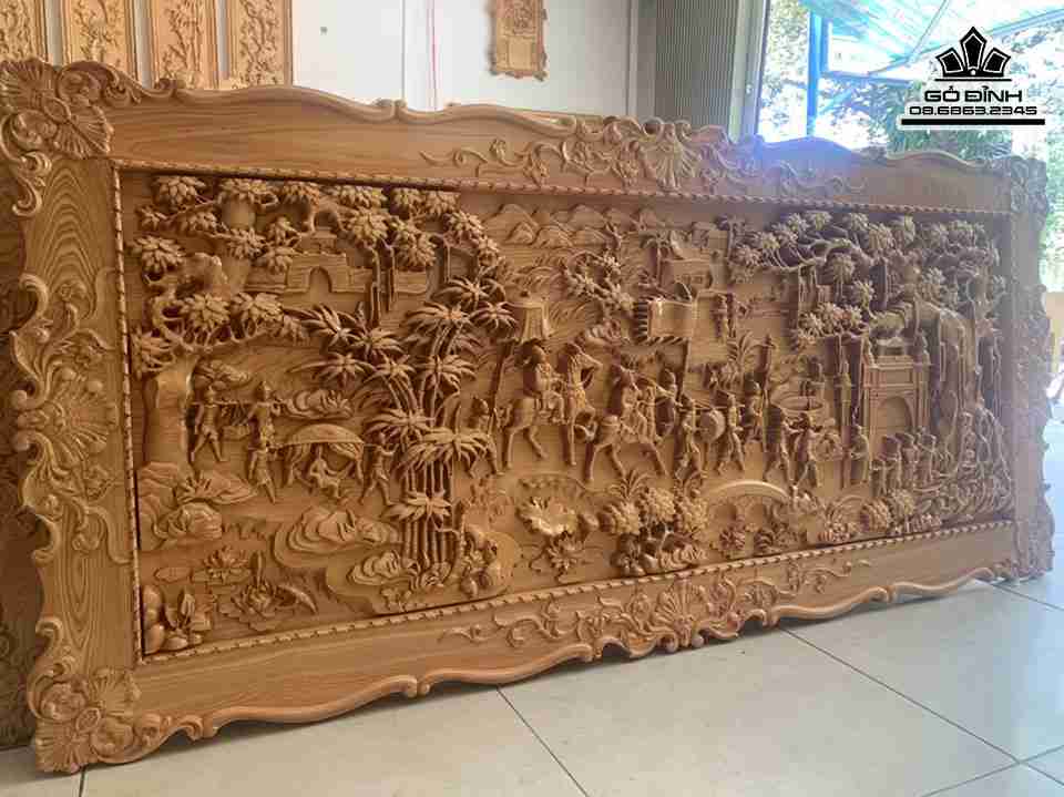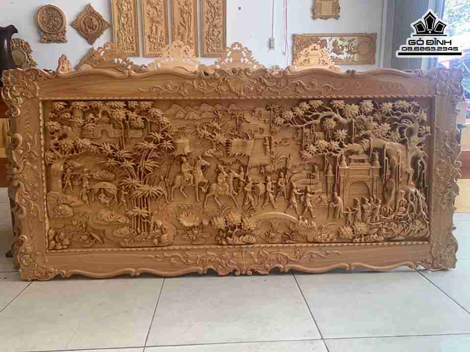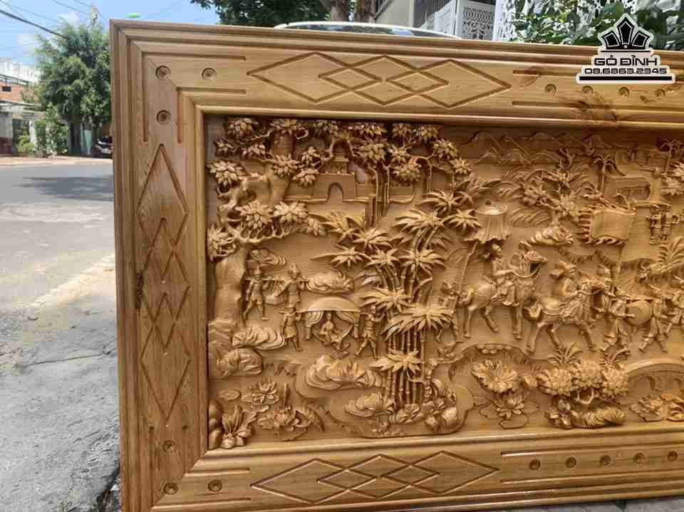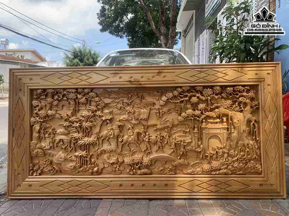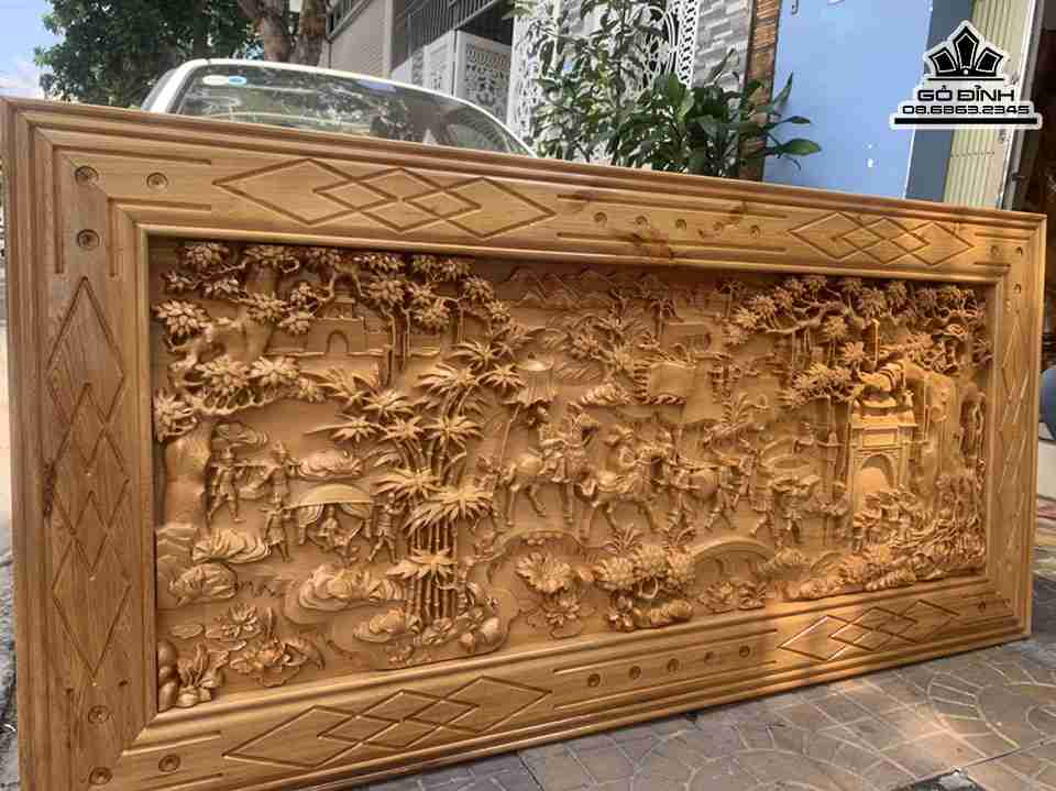 Tranh Vinh Quy Bái Tổ Gỗ Pơ Mu Cao 80 Ngang 170 Ván 4-5 Khung 3 (cm)