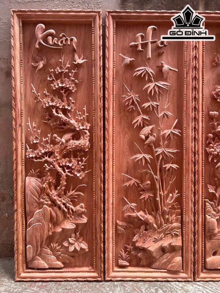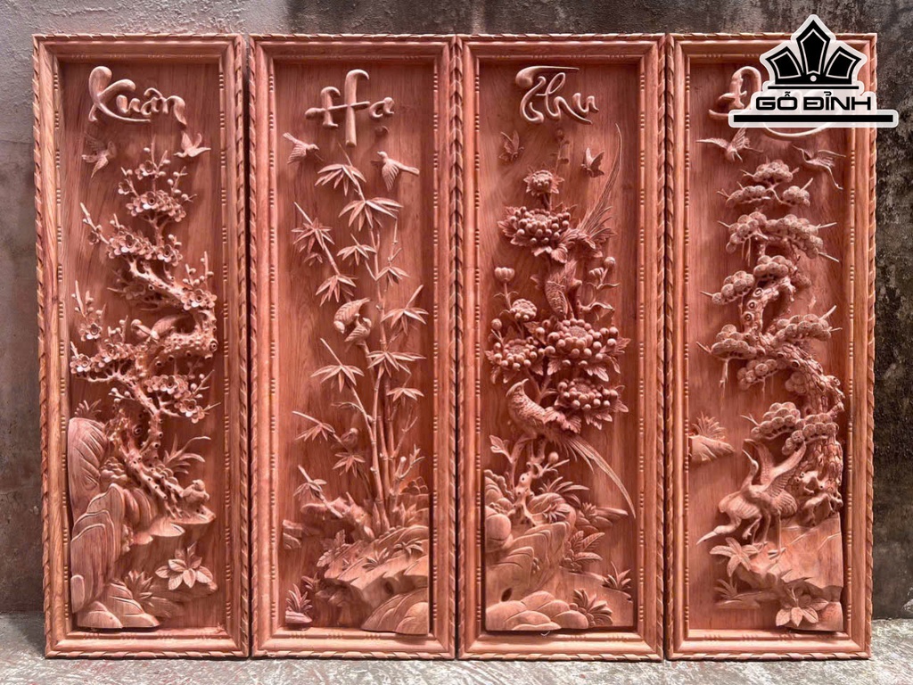 Tranh Xuân Hạ Thu Đông Gỗ Hương Kích Thước 42x127x5 (cm)
