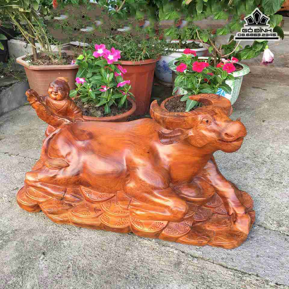 Trâu và chú tiểu gỗ hương cao 28 rộng 55 dày 25 (cm)