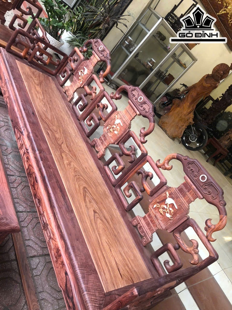 Triện Móc Gỗ Cẩm Ta - Ghế Cao 97 Ngan 67 Sâu 52 (cm) - Đôn Cao 69 Ngang 38 Sâu 48 (cm) - Đoản Dài 200 Sâu 54 Cao 100 (cm) - Bàn Dài 130 Rộng 90 Cao 60 (cm)