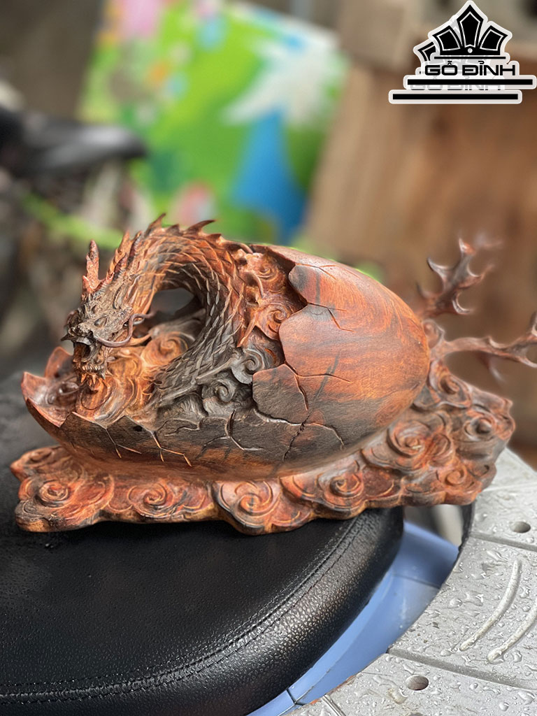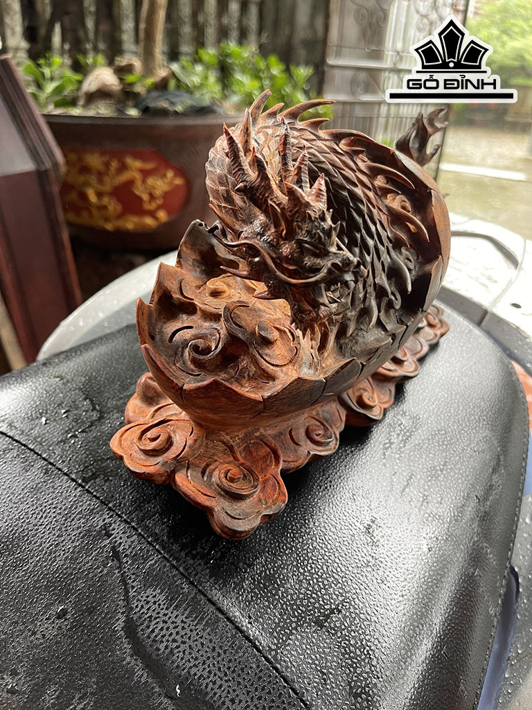 Trứng Rồng Phong Thủy Gỗ Trắc Cao 15 Ngang 28 Sâu 11 (cm)