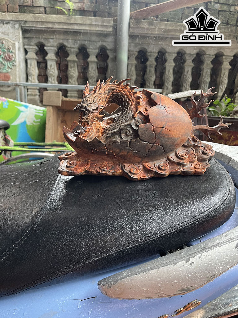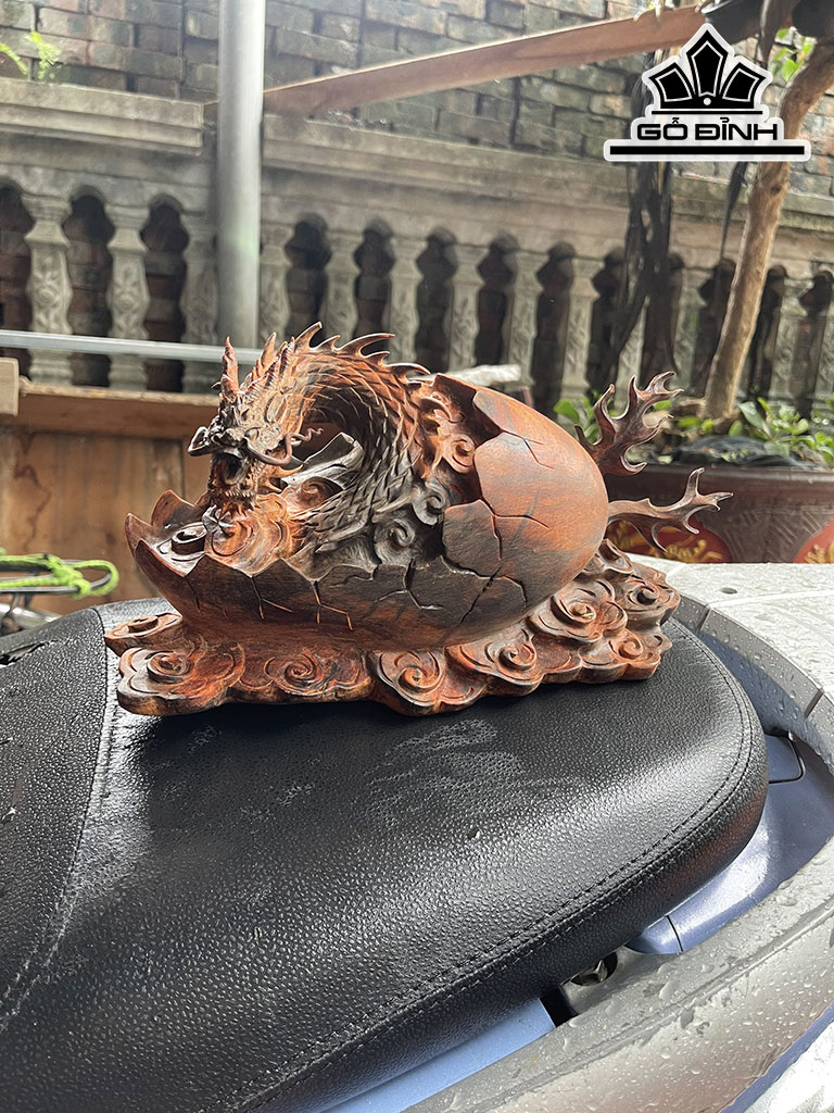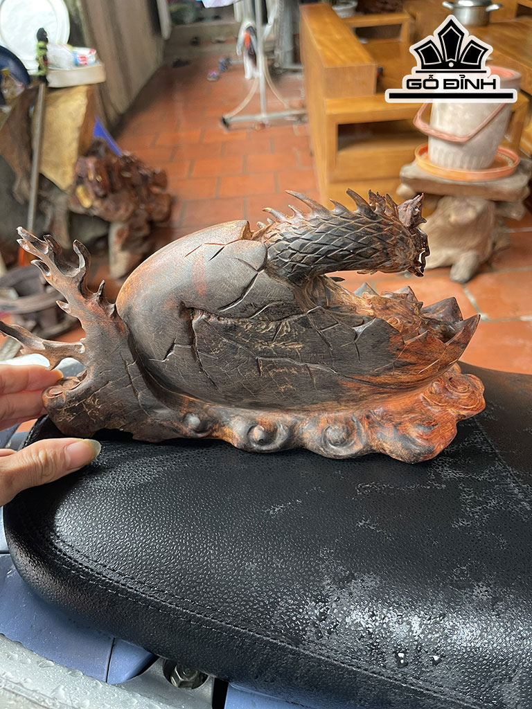 Trứng Rồng Phong Thủy Gỗ Trắc Cao 15 Ngang 28 Sâu 11 (cm)