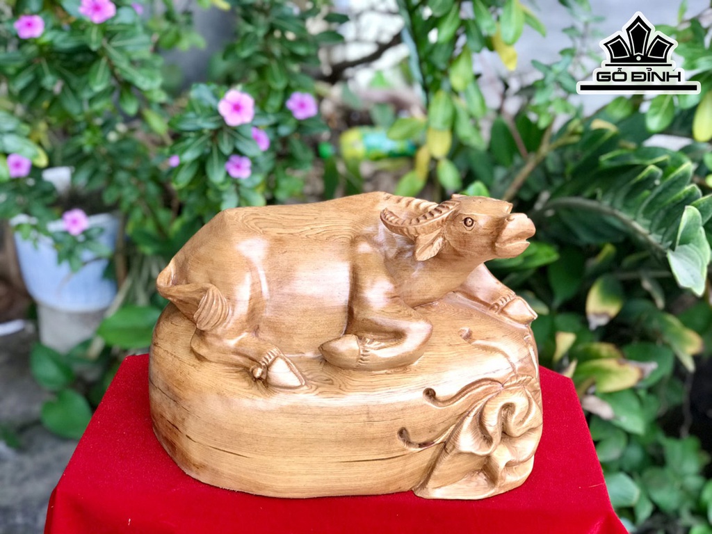 Tượn Trâu Nằm Tiền Vàng Gỗ Ngọc Am Cao 24 Ngang 34 Sâu 21 (cm)
