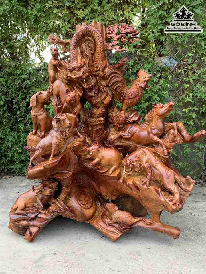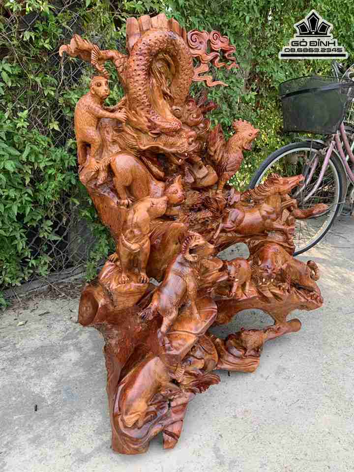 Tượng 12 Con Giáp Gỗ Hương Cao 1m10 Ngang 90 Sâu 50 (cm)