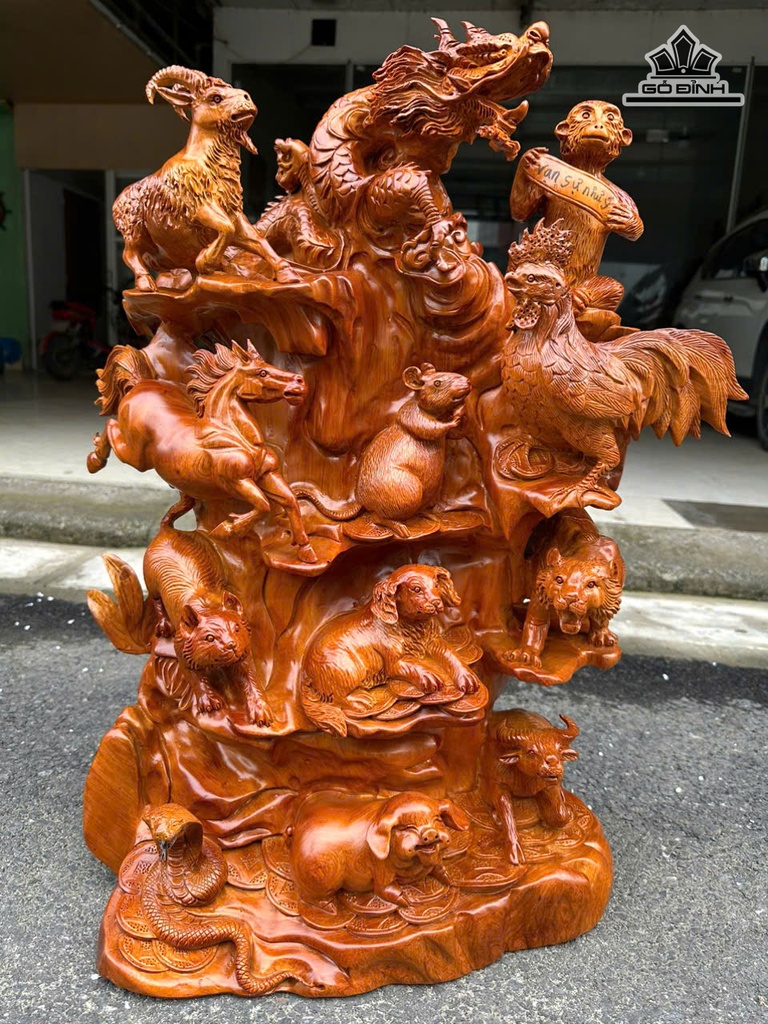 Tượng 12 Con Giáp Gỗ Hương Cao 70 Ngang 50 Sâu 25 (cm)