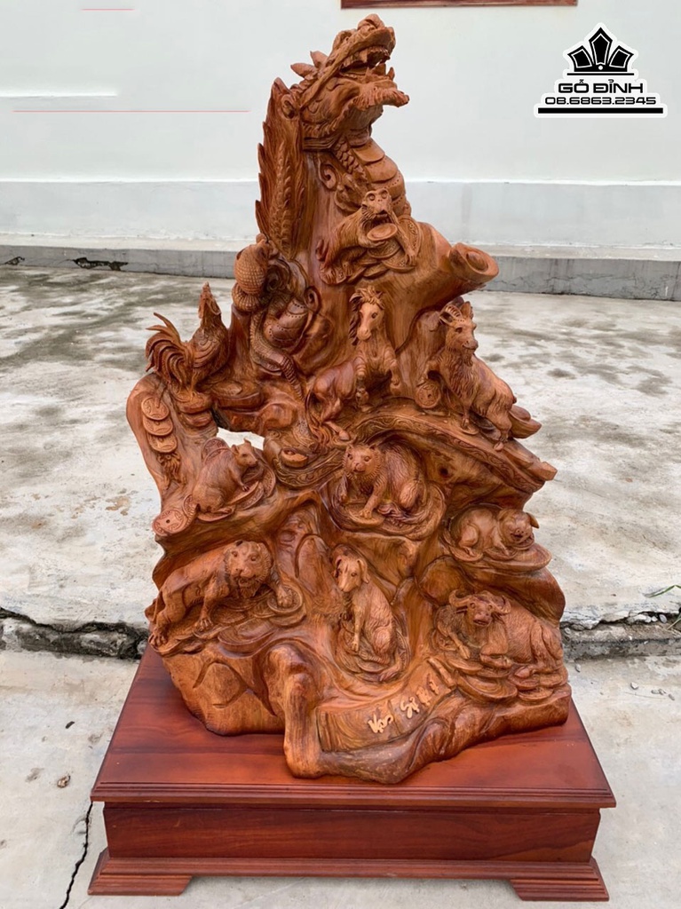 Tượng 12 Con Giáp Gỗ Hương Việt Cao 123 Ngang 65 Sâu 41 (cm)