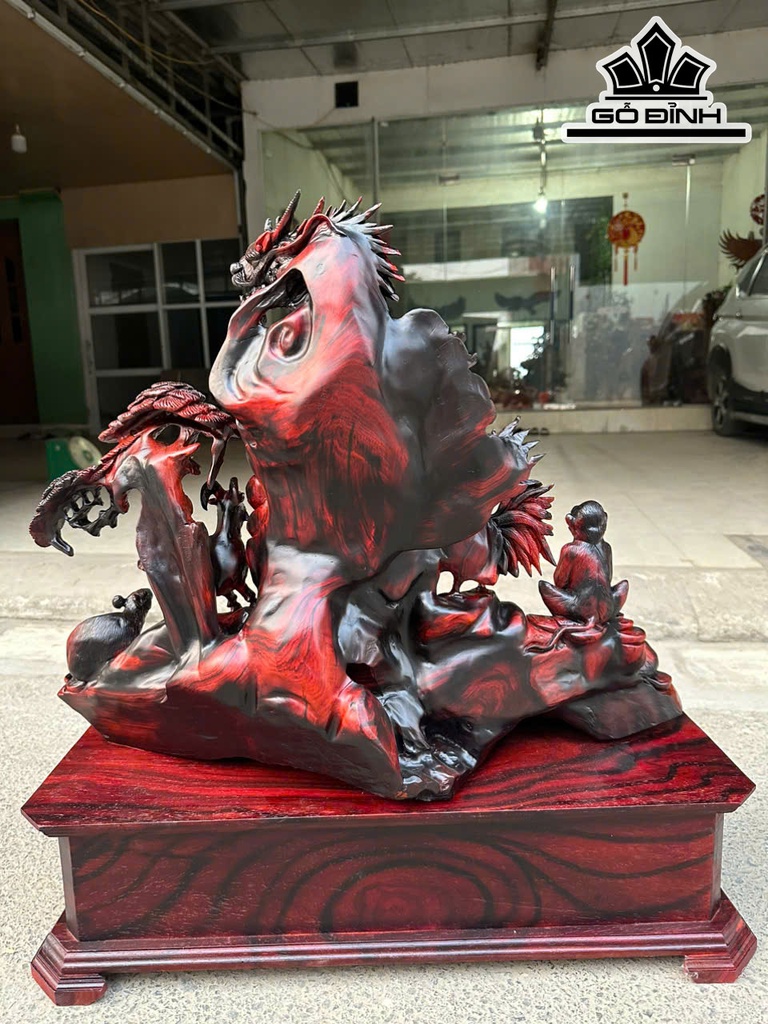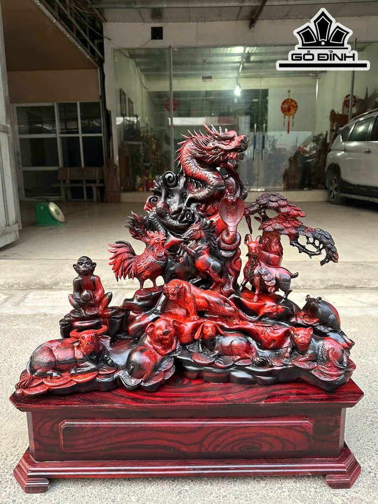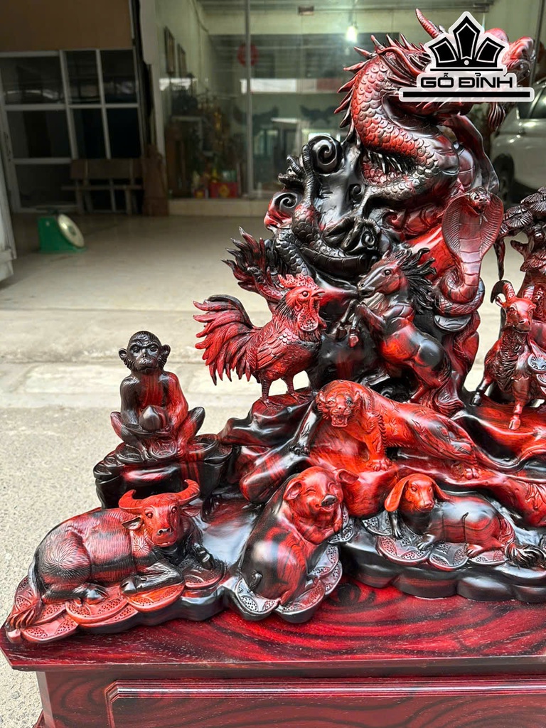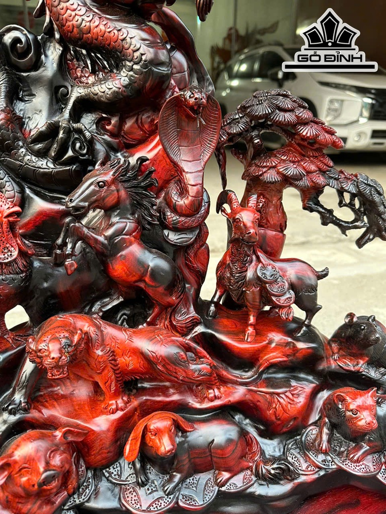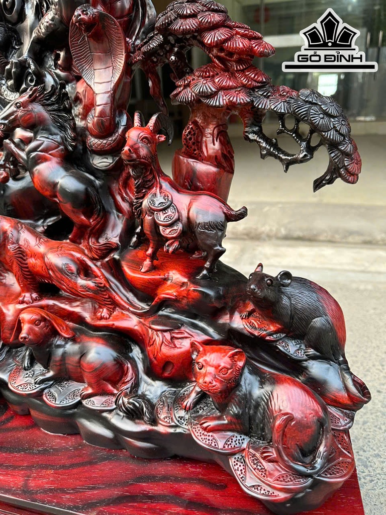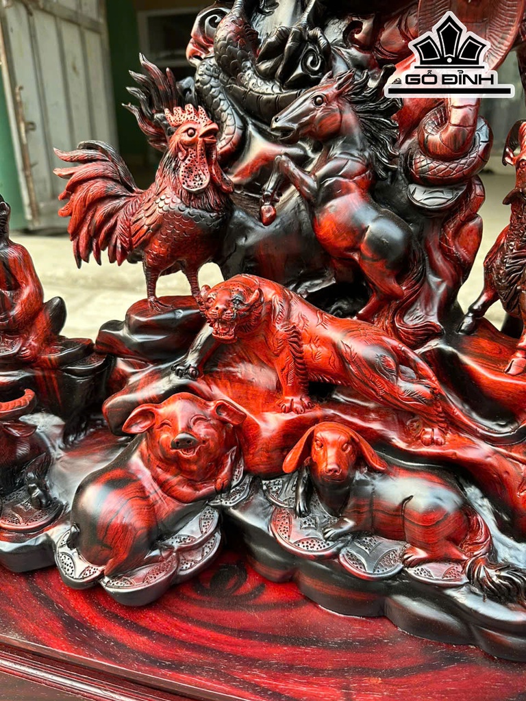 Tượng 12 Con Giáp Gỗ Trắc Cao Cả Kỷ 73 Ngang 70 Sâu 25 (cm) - Riêng Kỷ Cao 18 (cm)
