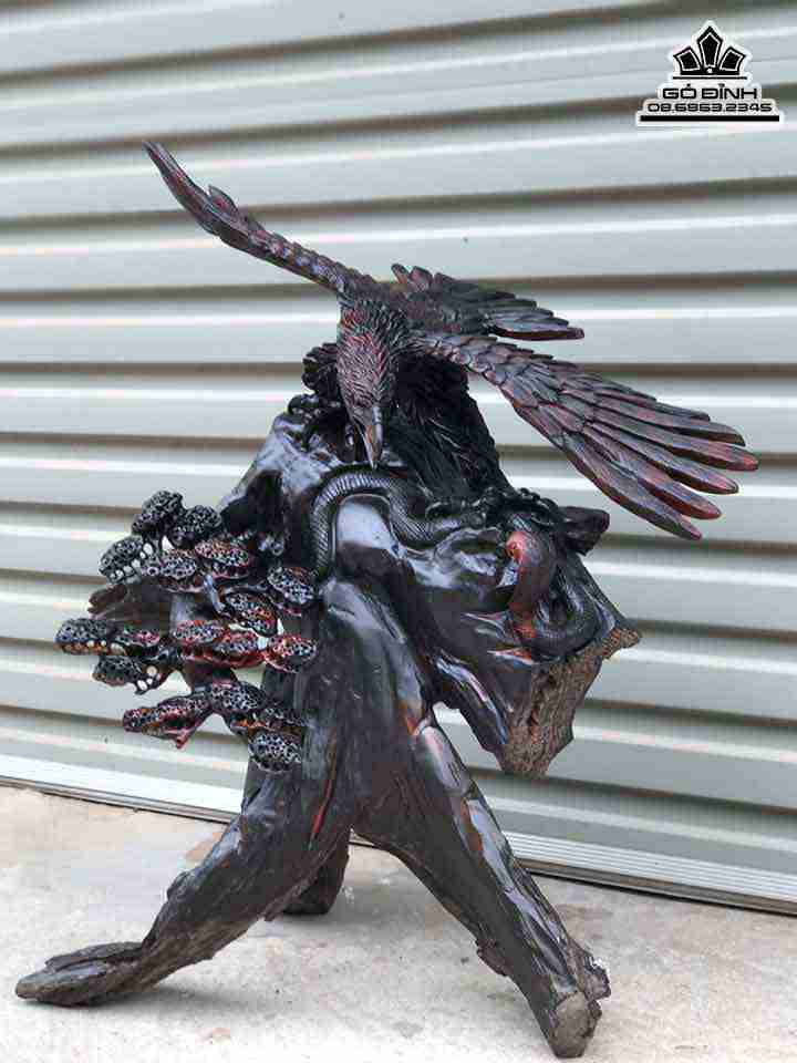 Tượng Đại Bàng Săn Mồi Gỗ Trắc Cao 74 Rộng 58 Dày 34 (cm)