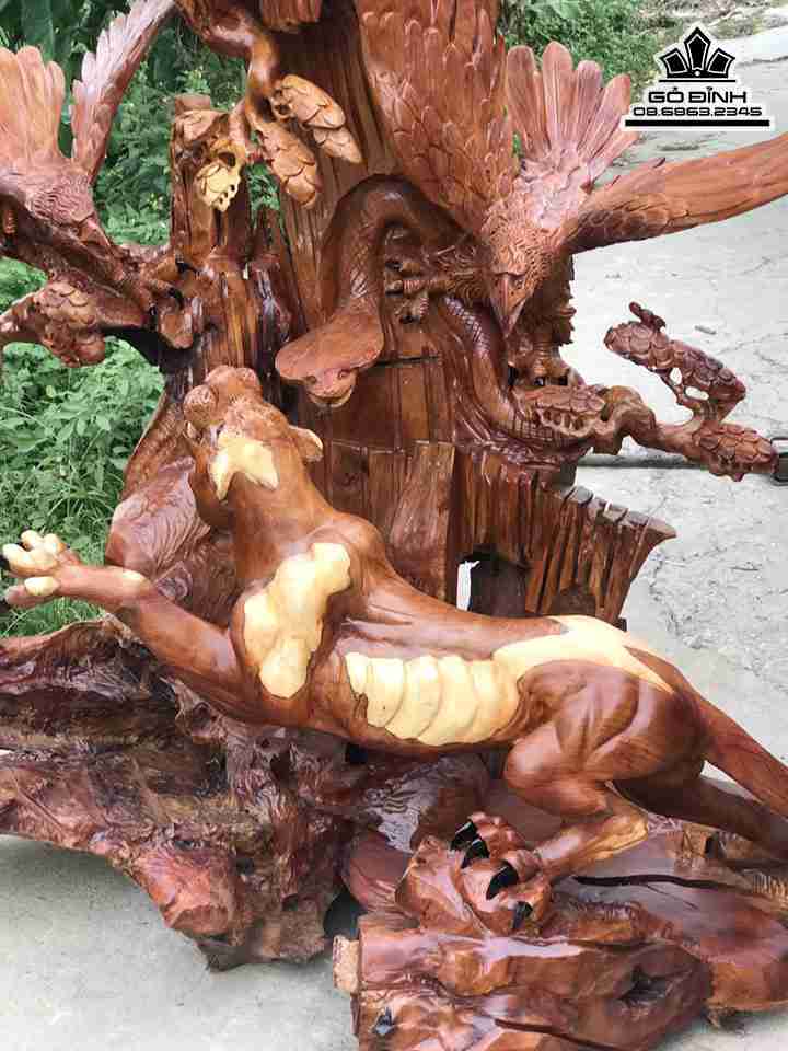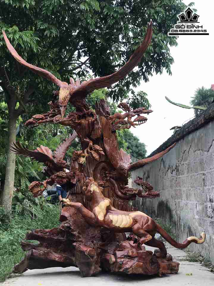 - Tượng Anh Hùng Tương Ngộ Gỗ Hương Cao 250 Ngang 190 Sâu 100 (cm)