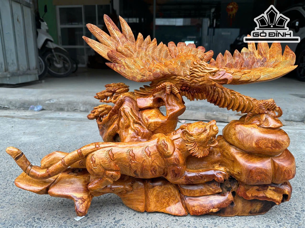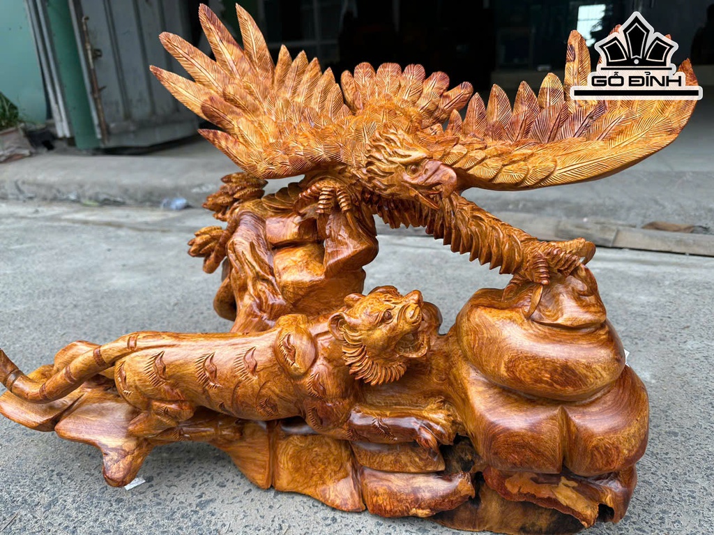 Tượng Anh Hùng Tương Ngộ Gỗ Hương Cao 50 Ngang 61 Sâu 36 (cm)