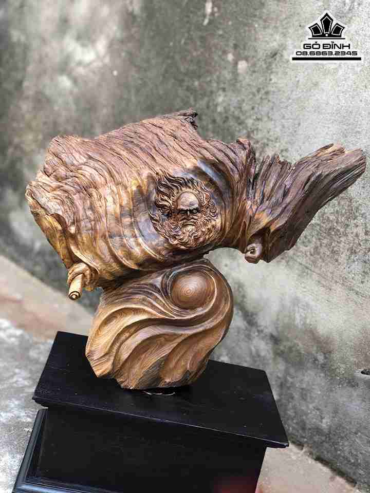Tượng Đạt Ma Bay Gỗ Bách Xanh Cao 33 Rộng 41 Dày 16 (cm)