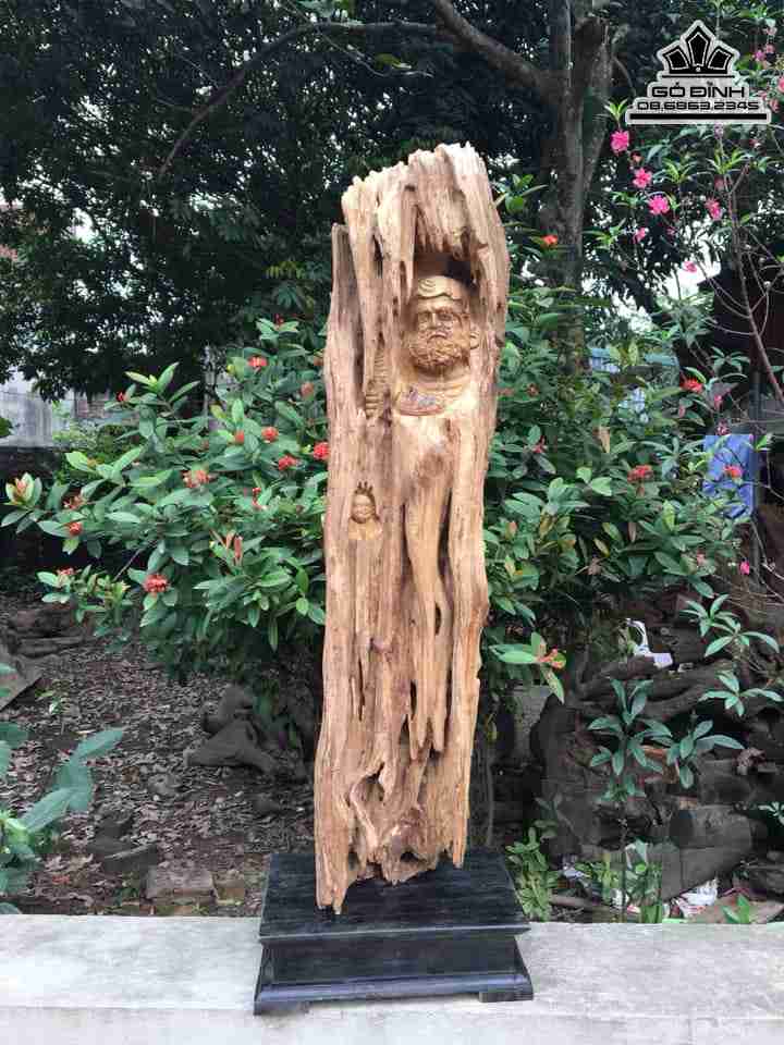 Tượng Đạt Ma Gỗ Lũa Bách Xanh Cao 113 Rộng 25 Dày 17 (cm)