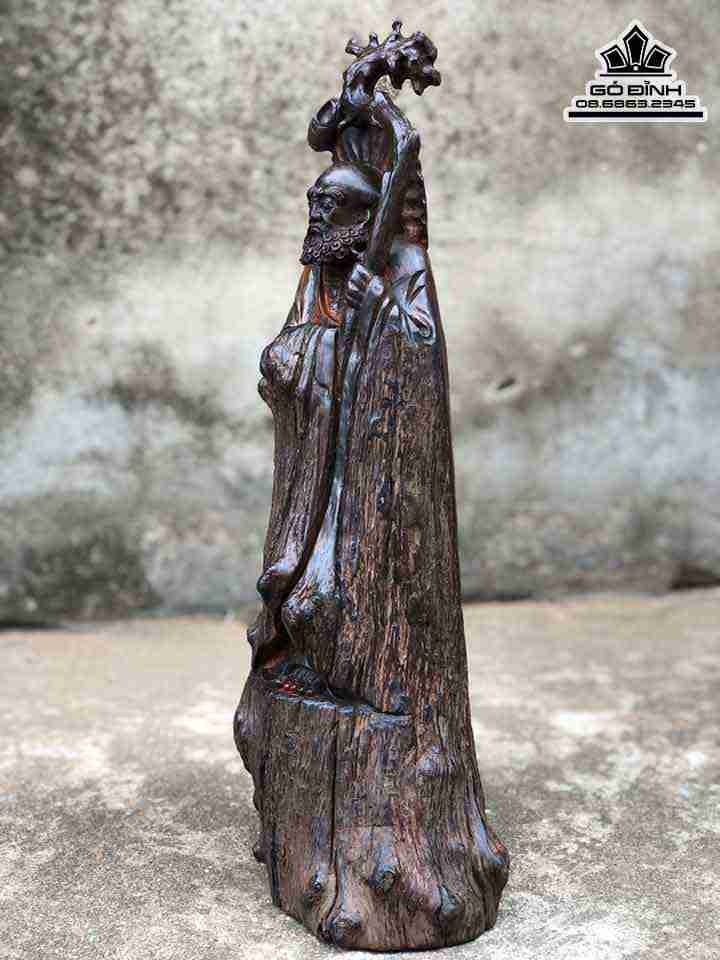 Tượng Đạt Ma Gỗ Trắc Cao 41 Rộng 16 Dày 9 (cm)