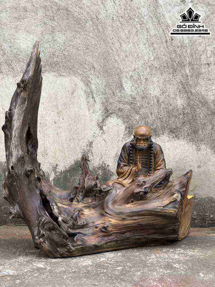 Tượng Đạt Ma Ngồi Thiền Gỗ Bách Xanh Cao 39 Rộng 39 Dày 16 (cm)