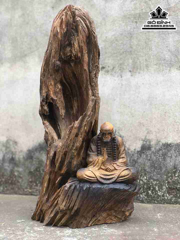 Tượng Đạt Ma Ngồi Thiền Gỗ Bách Xanh Cao 56 Ngang 29 Sâu 15 (cm)