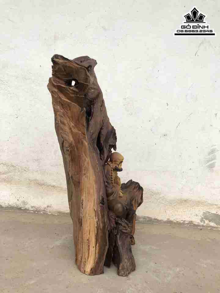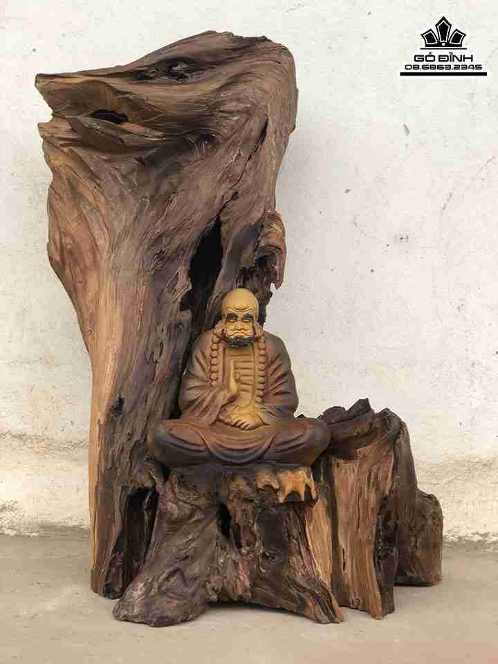 Tượng Đạt Ma Ngồi Thiền Gỗ Bách Xanh Cao 50 Ngang 33 Sâu 18 (cm)