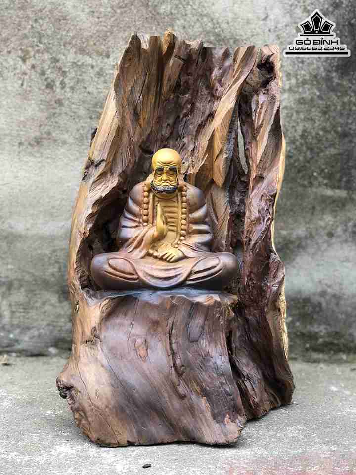 Tượng Đạt Ma Ngồi Thiền Gỗ Bách Xanh Cao 39 Ngang 26 Sâu 22 (cm)